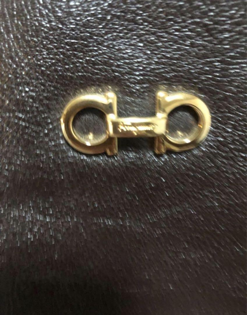 Salvatore Ferragamo Hand Bag Tote Purse Gancini Leather Black Authentic