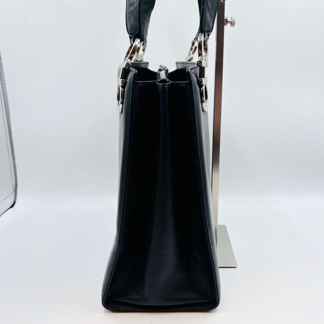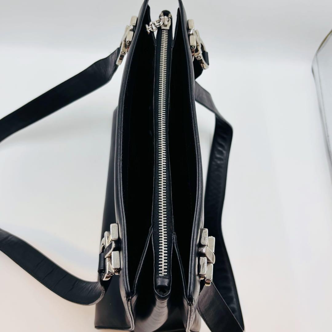 Salvatore Ferragamo Hand Bag Tote Purse Gancini Leather Black Authentic