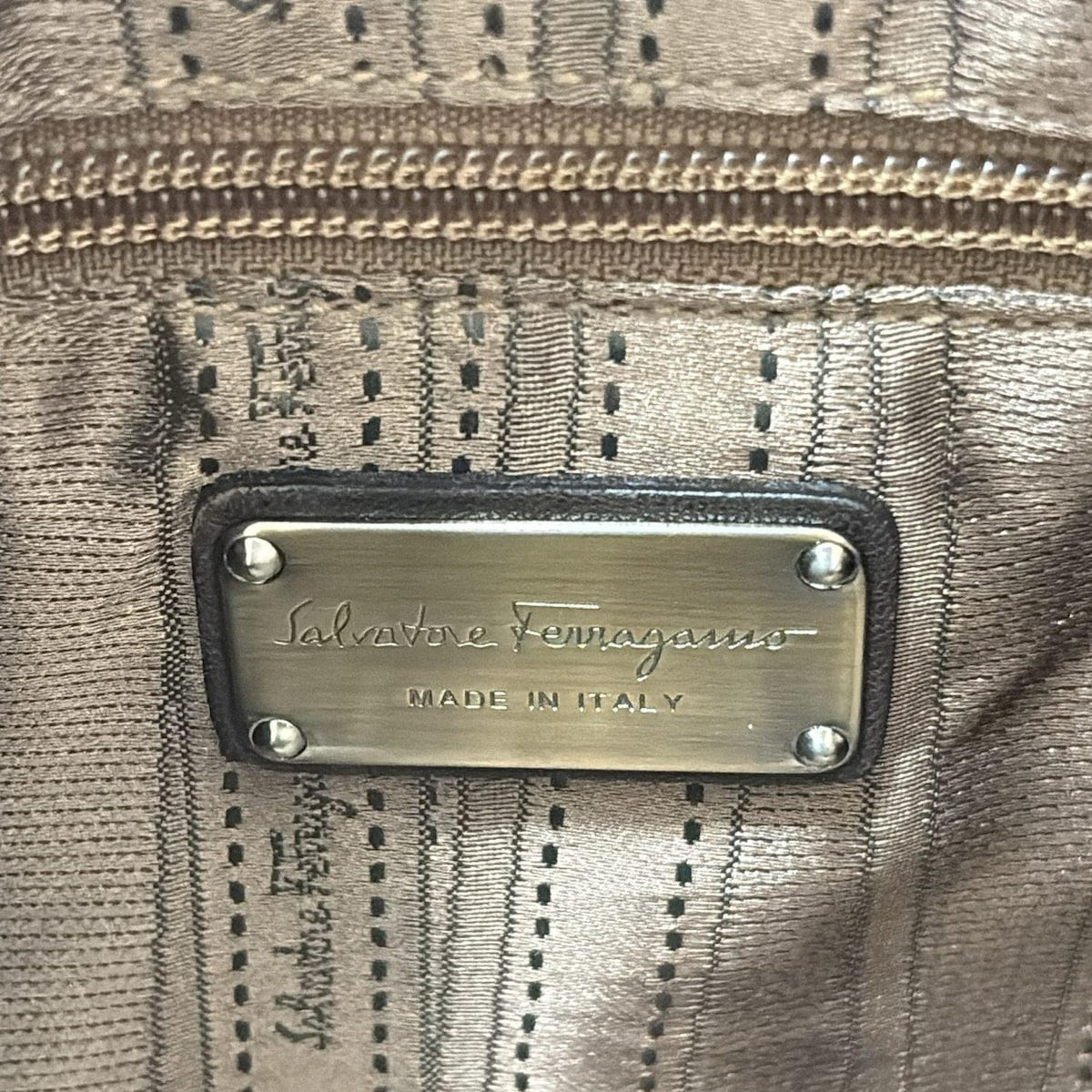 Salvatore Ferragamo Hand Bag Tote Purse Gancini Leather Dark Brown Authentic