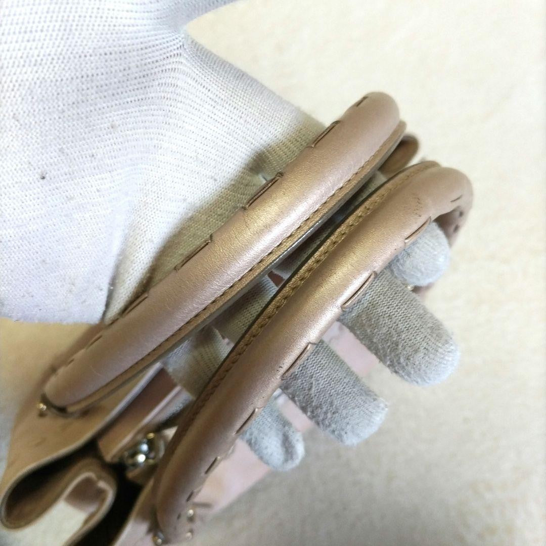 Salvatore Ferragamo Hand Bag Tote Purse Gancini Leather Pink Beige Authentic