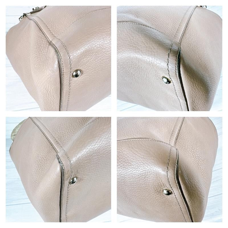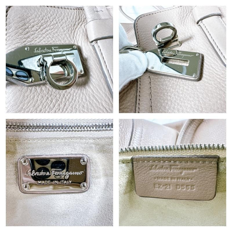 Salvatore Ferragamo Hand Bag Tote Purse Gancini Leather Pink Beige Authentic