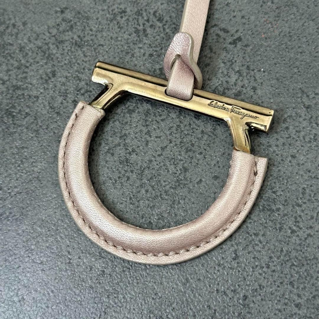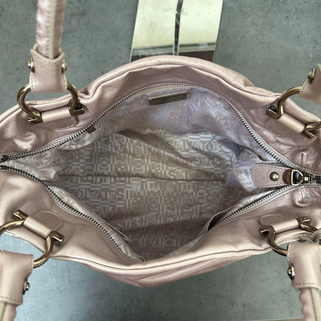 Salvatore Ferragamo Hand Bag Tote Purse Gancini Leather Pink Champagne Gold Auth