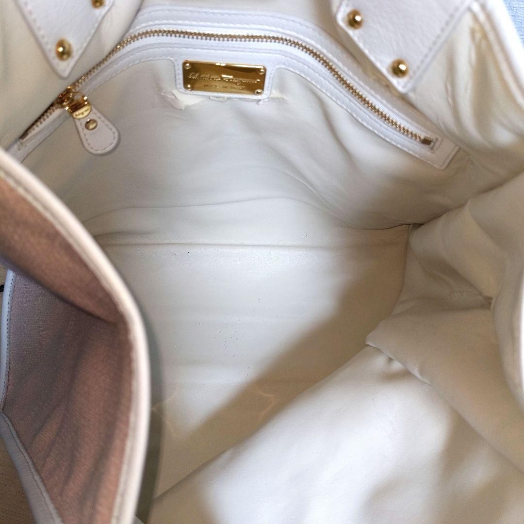 Salvatore Ferragamo Hand Bag Tote Purse Gancini Leather Pink White Authentic