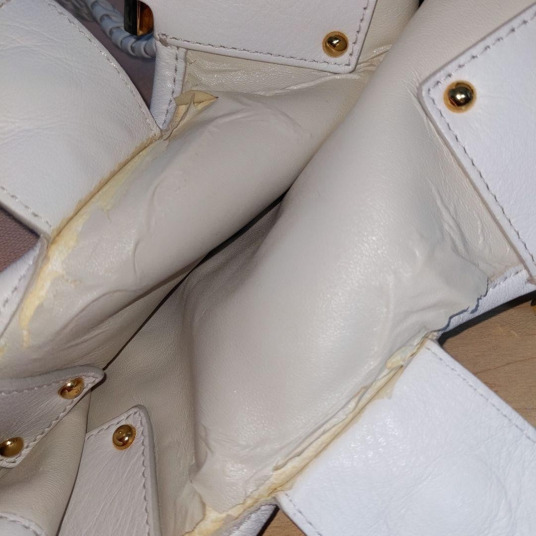 The fabric on the bottom of the inner logo plate (9th photo) and behind the button metal fittings (10th photo) has started to peel off, but overall it is in pretty good condition.