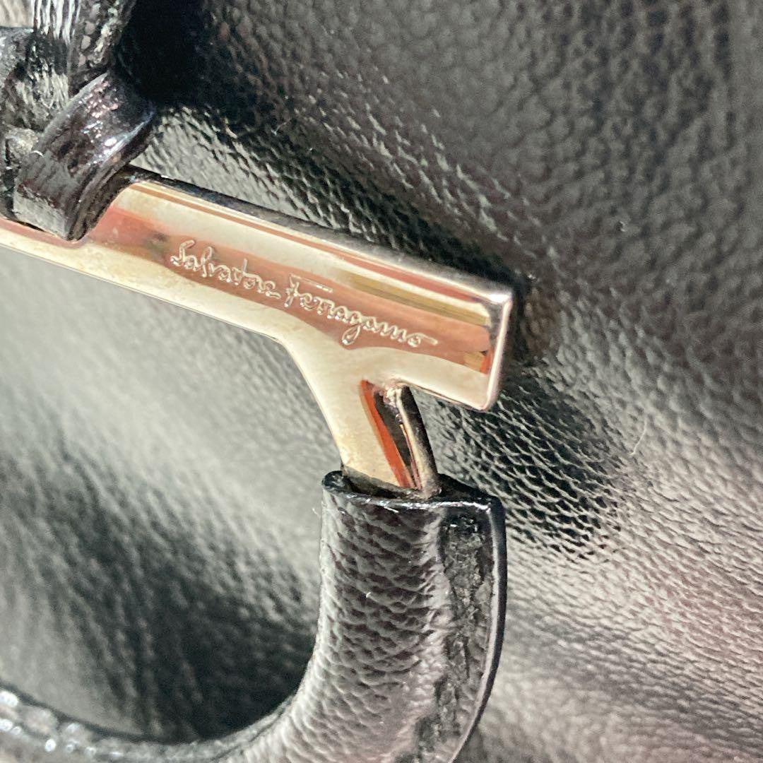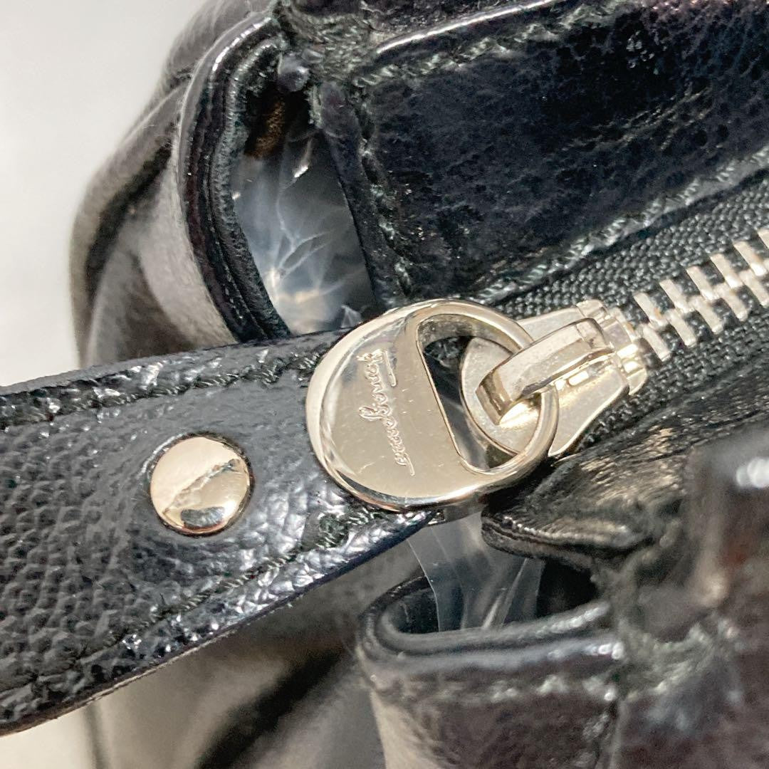 Salvatore Ferragamo Hand Bag Tote Purse Gancini Patent Leather Black Authentic