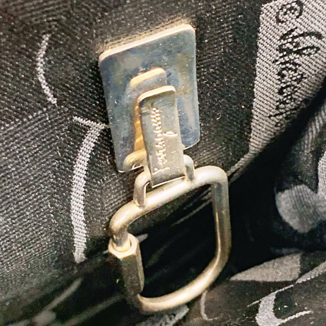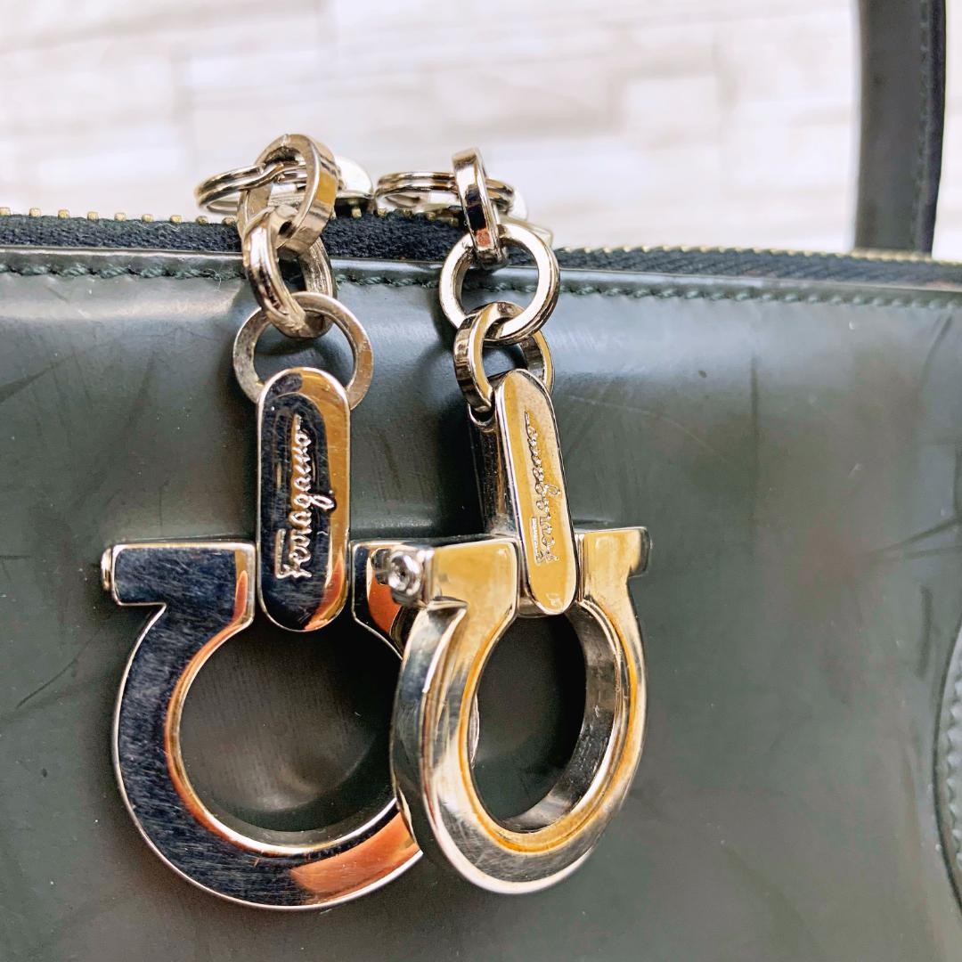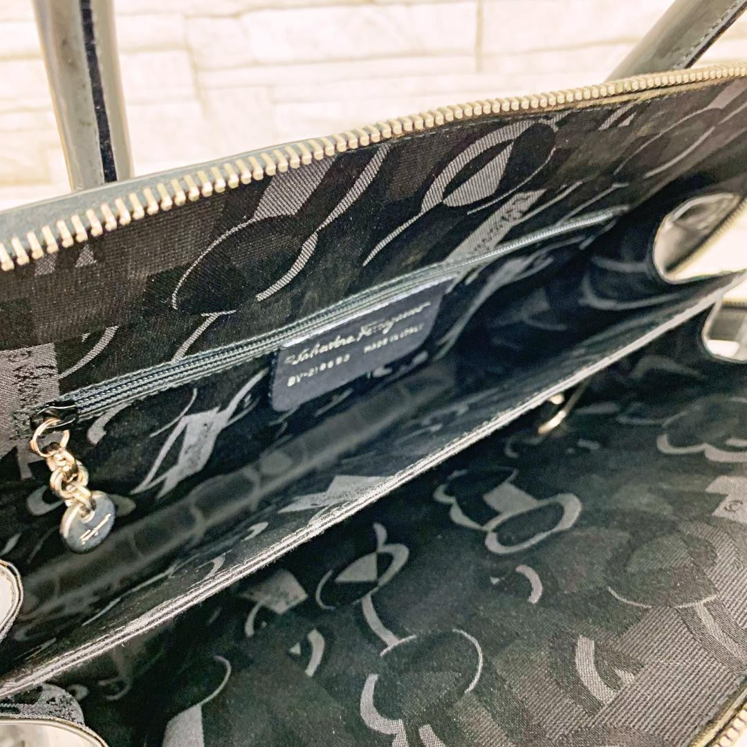 Salvatore Ferragamo Hand Bag Tote Purse Gancini Patent Leather Black Authentic