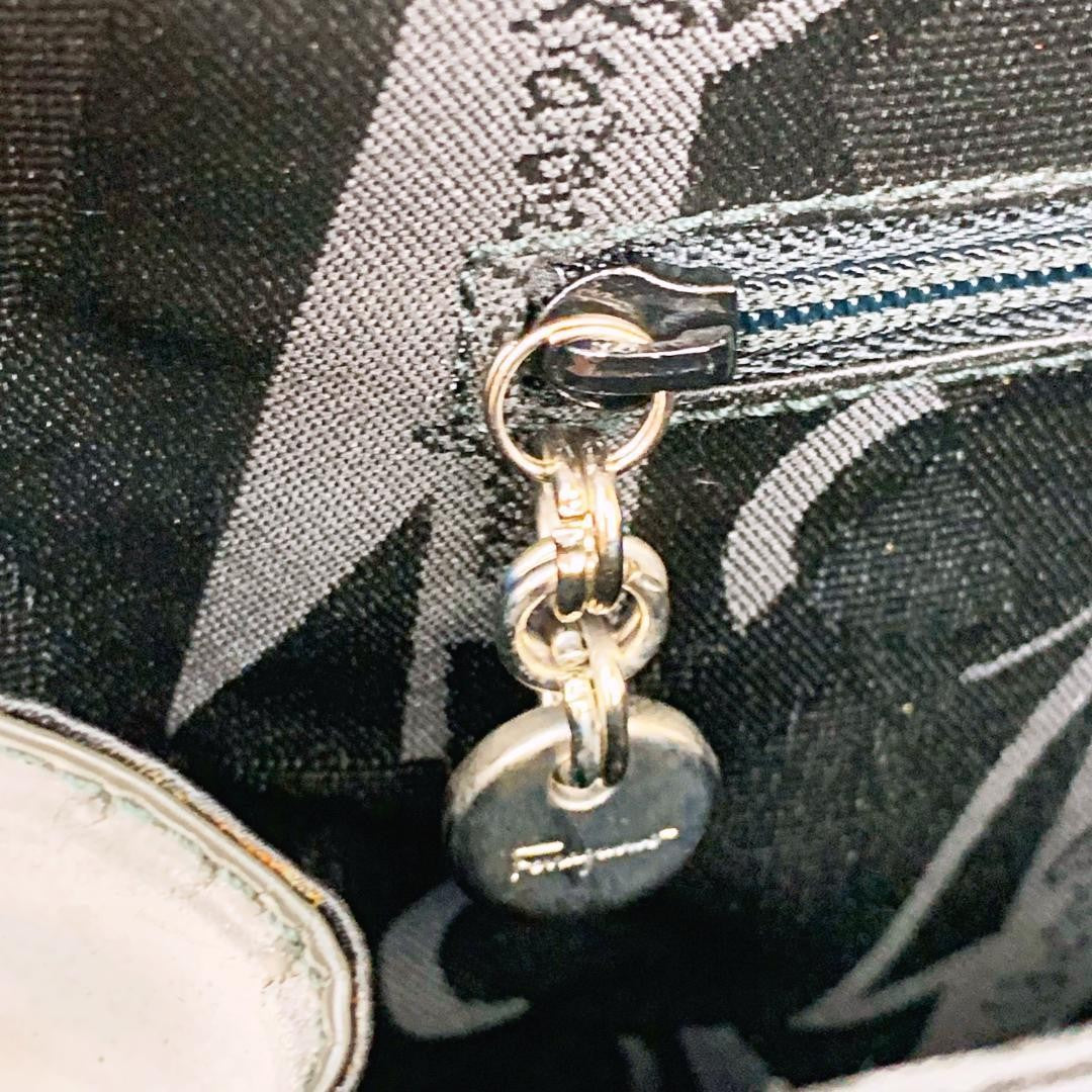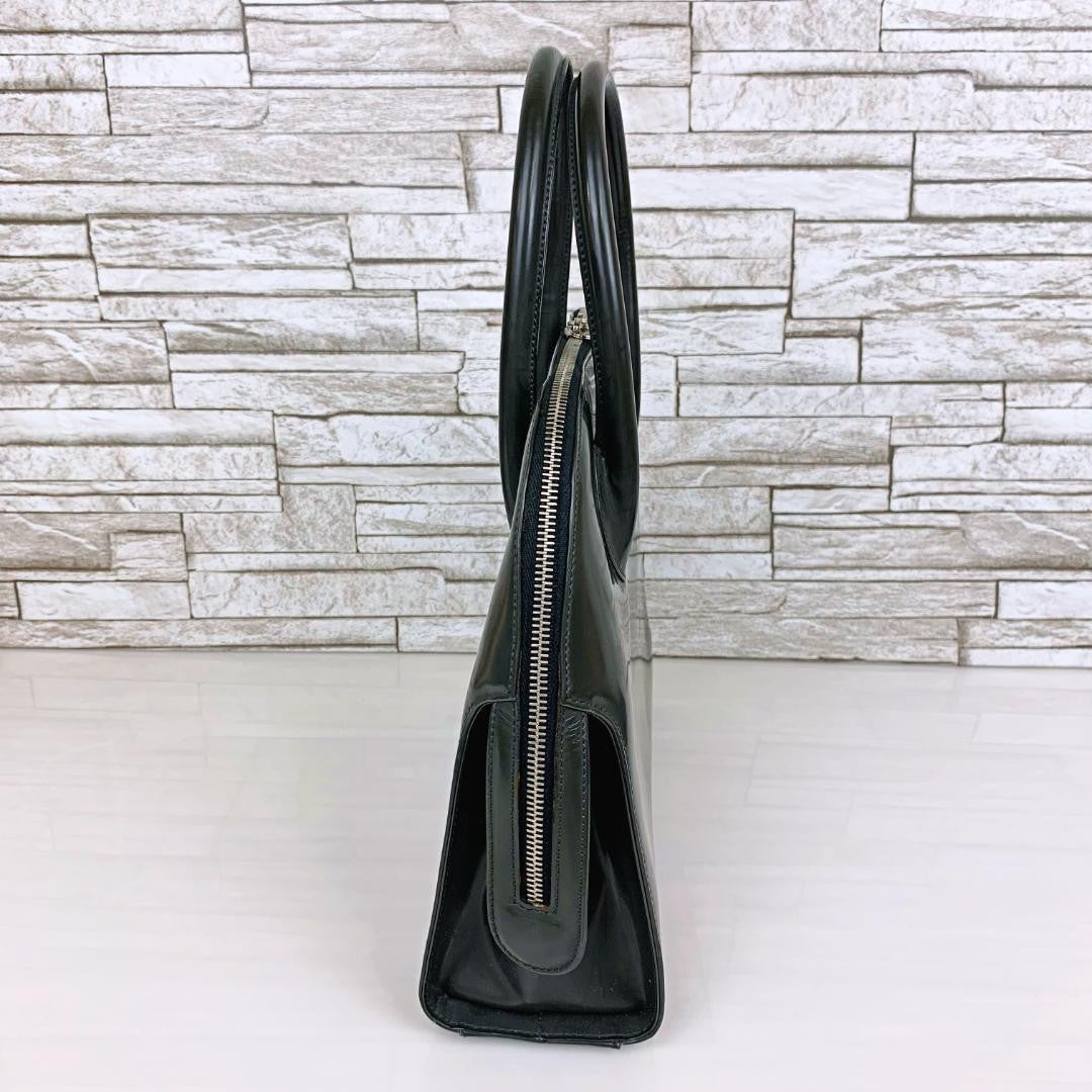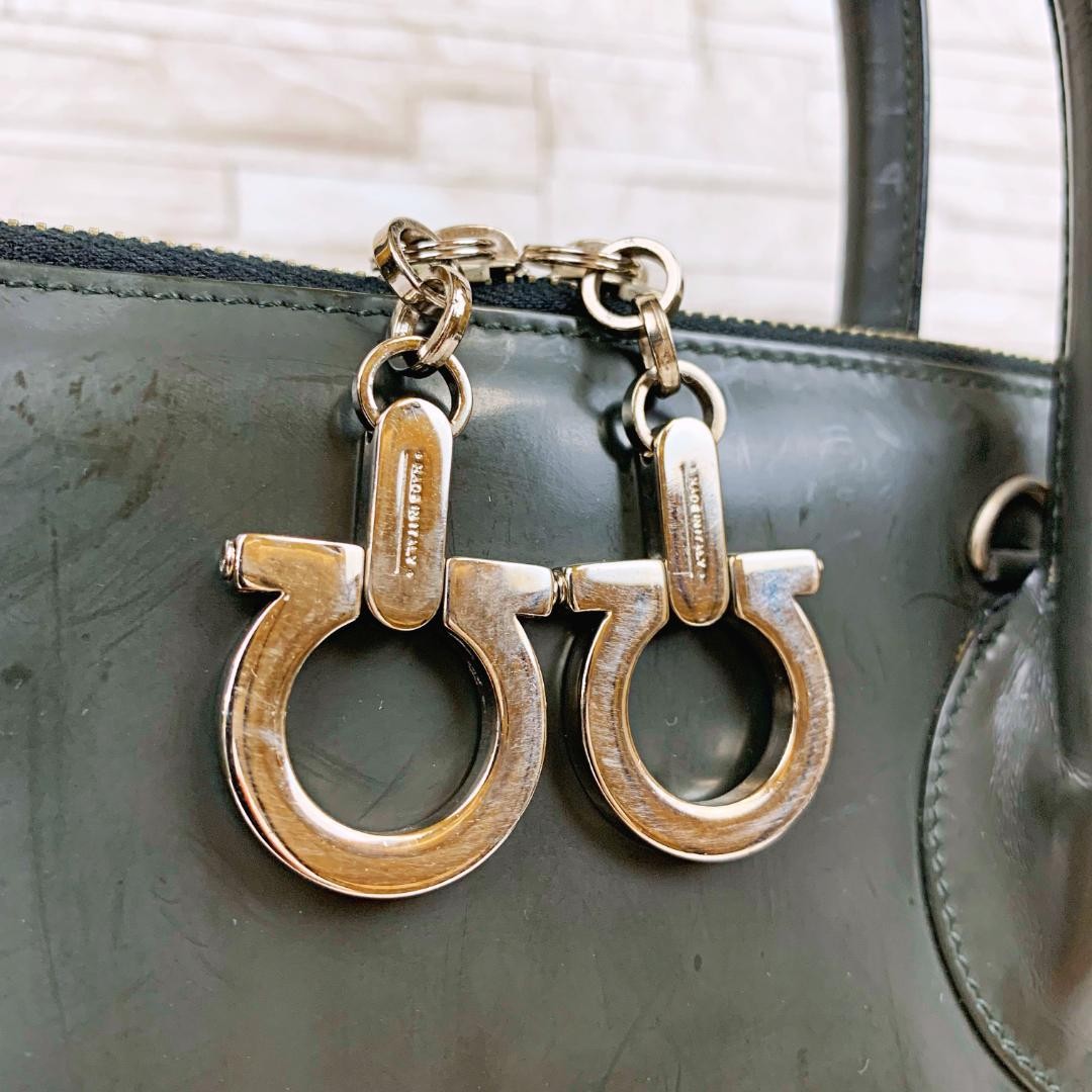 Salvatore Ferragamo Hand Bag Tote Purse Gancini Patent Leather Black Authentic