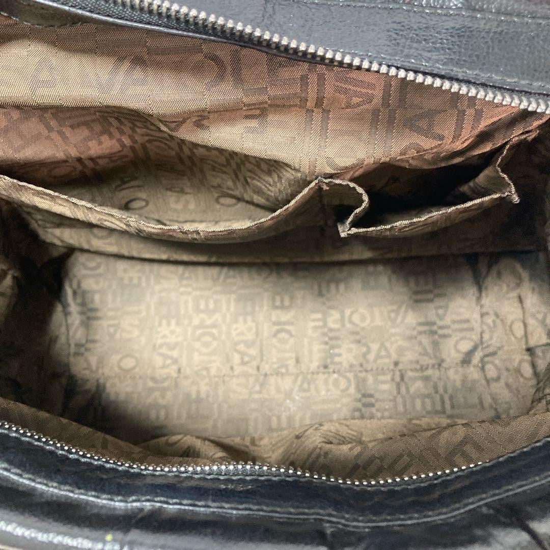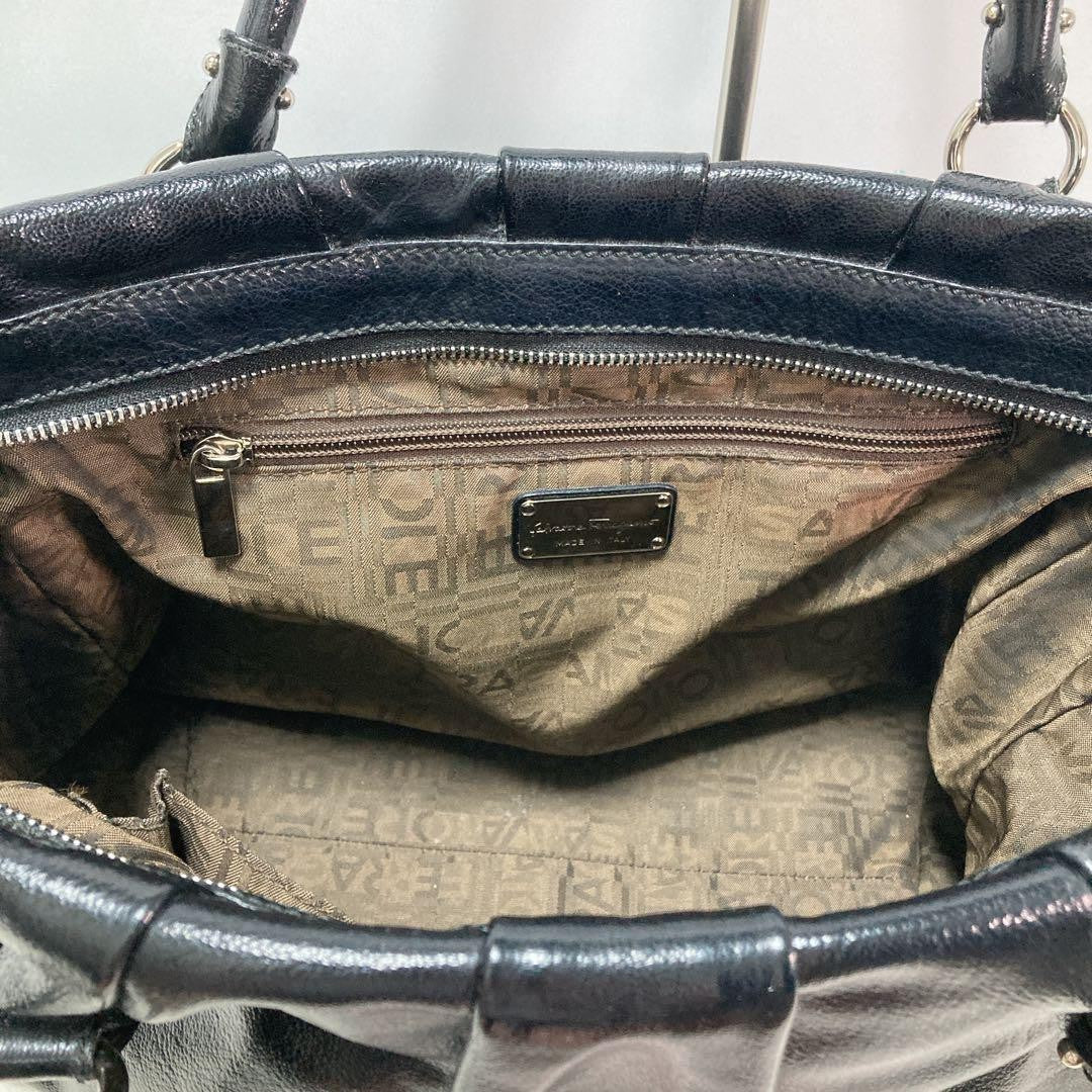 Salvatore Ferragamo Hand Bag Tote Purse Gancini Patent Leather Black Authentic