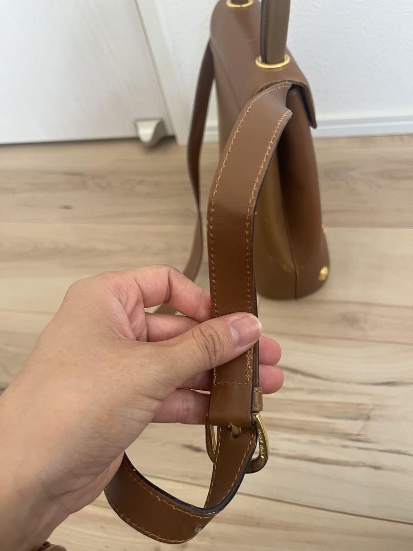 There is fading of the studs, small scratches, deterioration of the back cover as shown in photos 4 and 5, and deterioration of the shoulder strap.