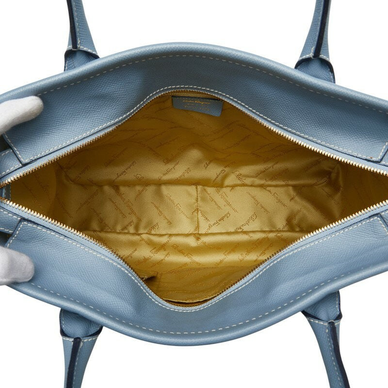 Salvatore Ferragamo Hand Bag Tote Purse Leather Light Blue Authentic