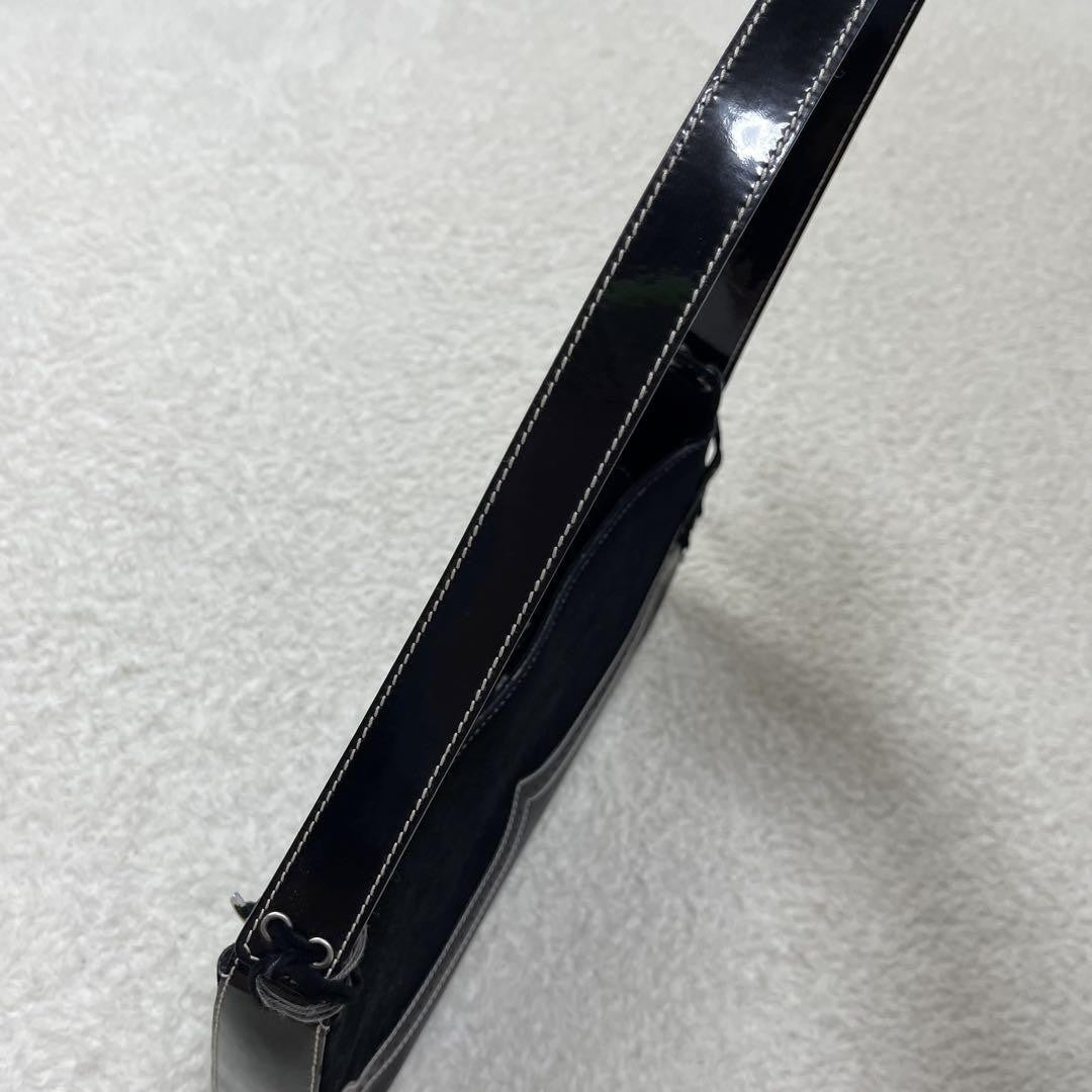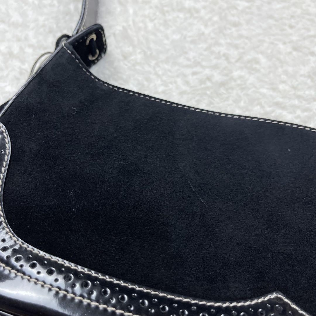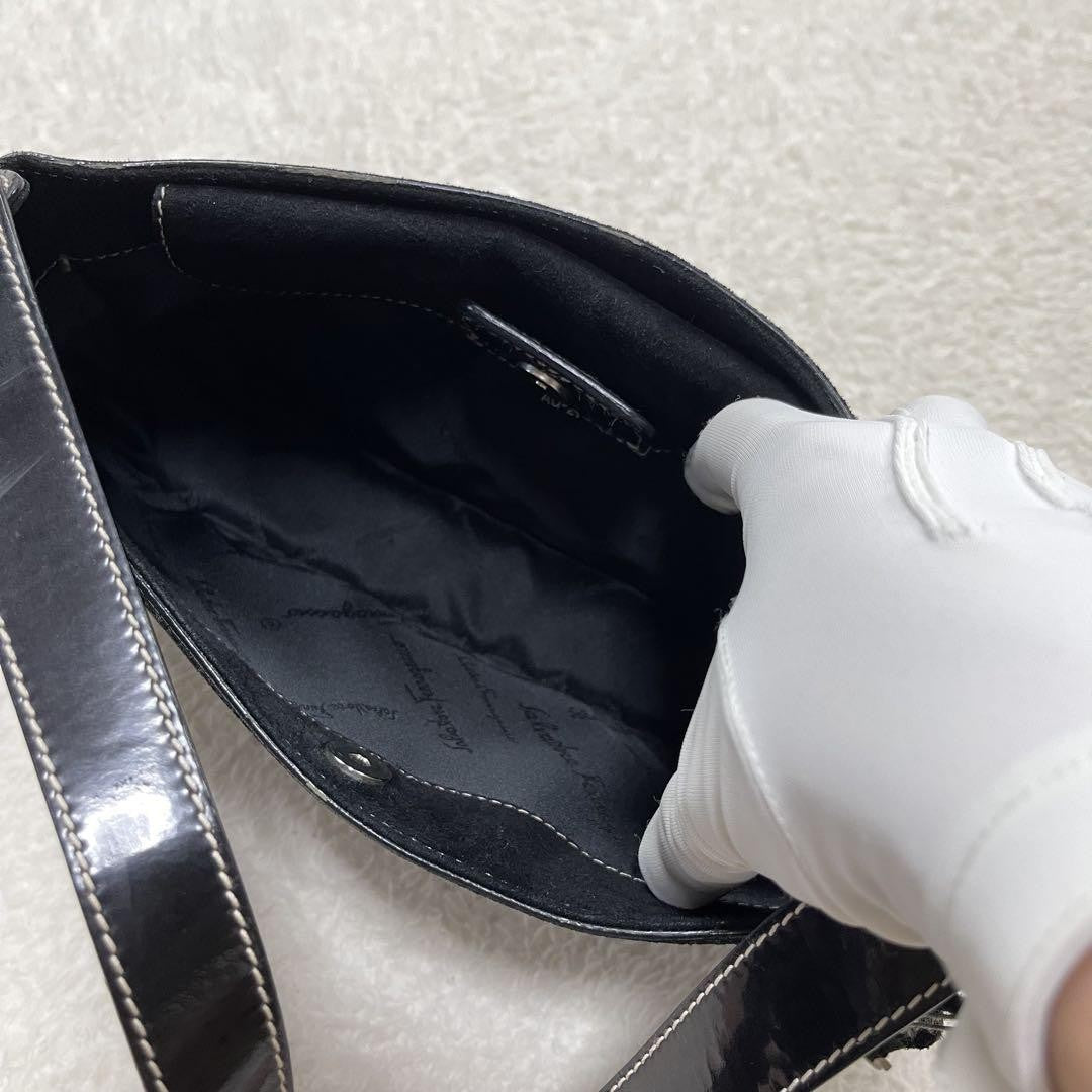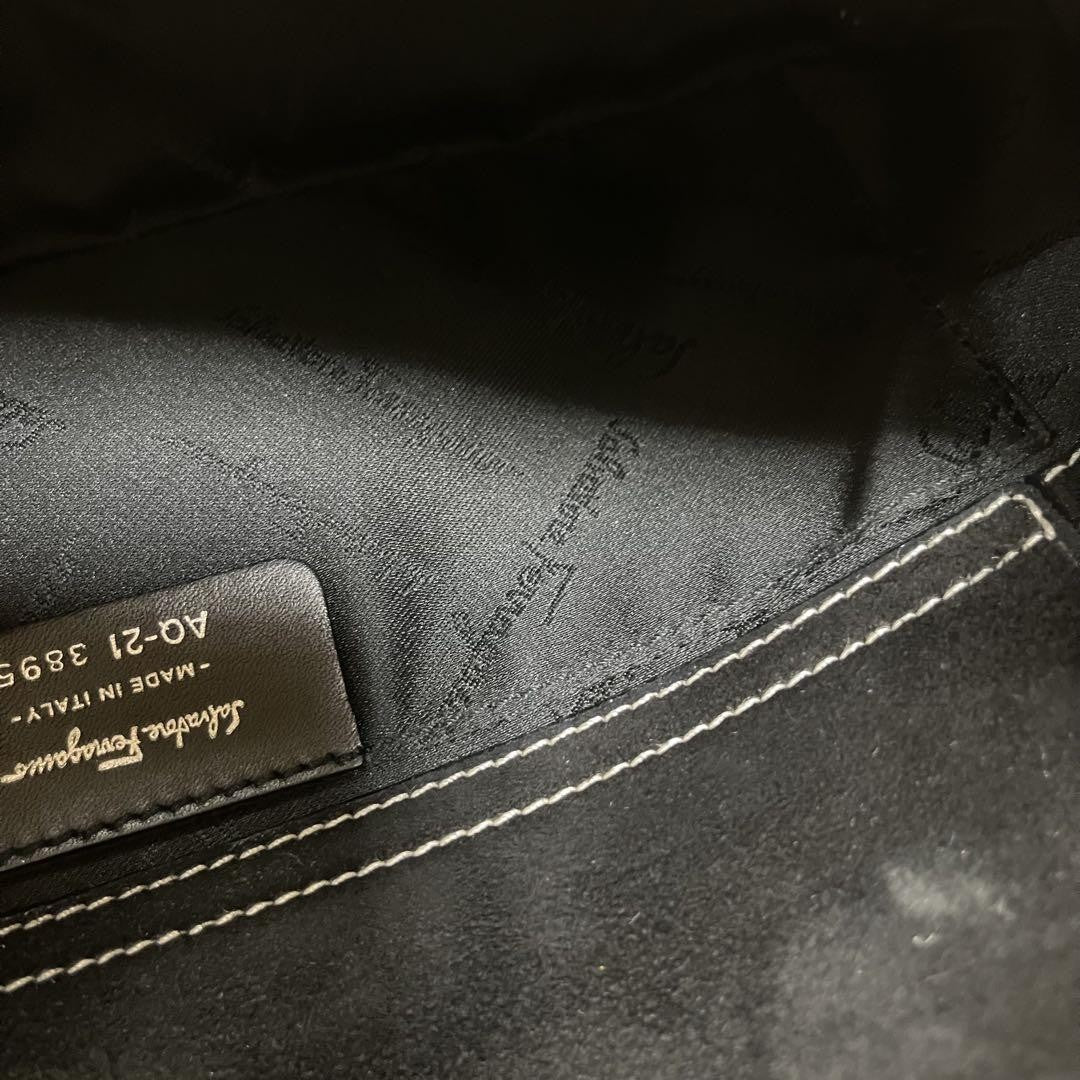 Salvatore Ferragamo Hand Bag Tote Purse Suede Patent Leather Black Authentic