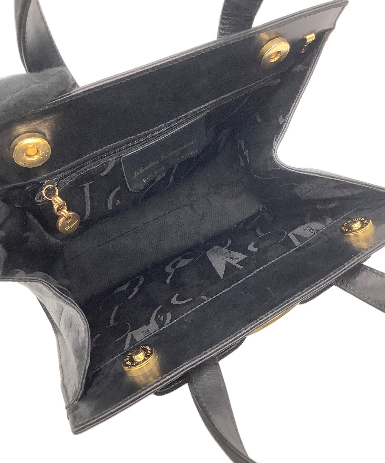 Salvatore Ferragamo Hand Bag Tote Purse Vara Leather Black Authentic