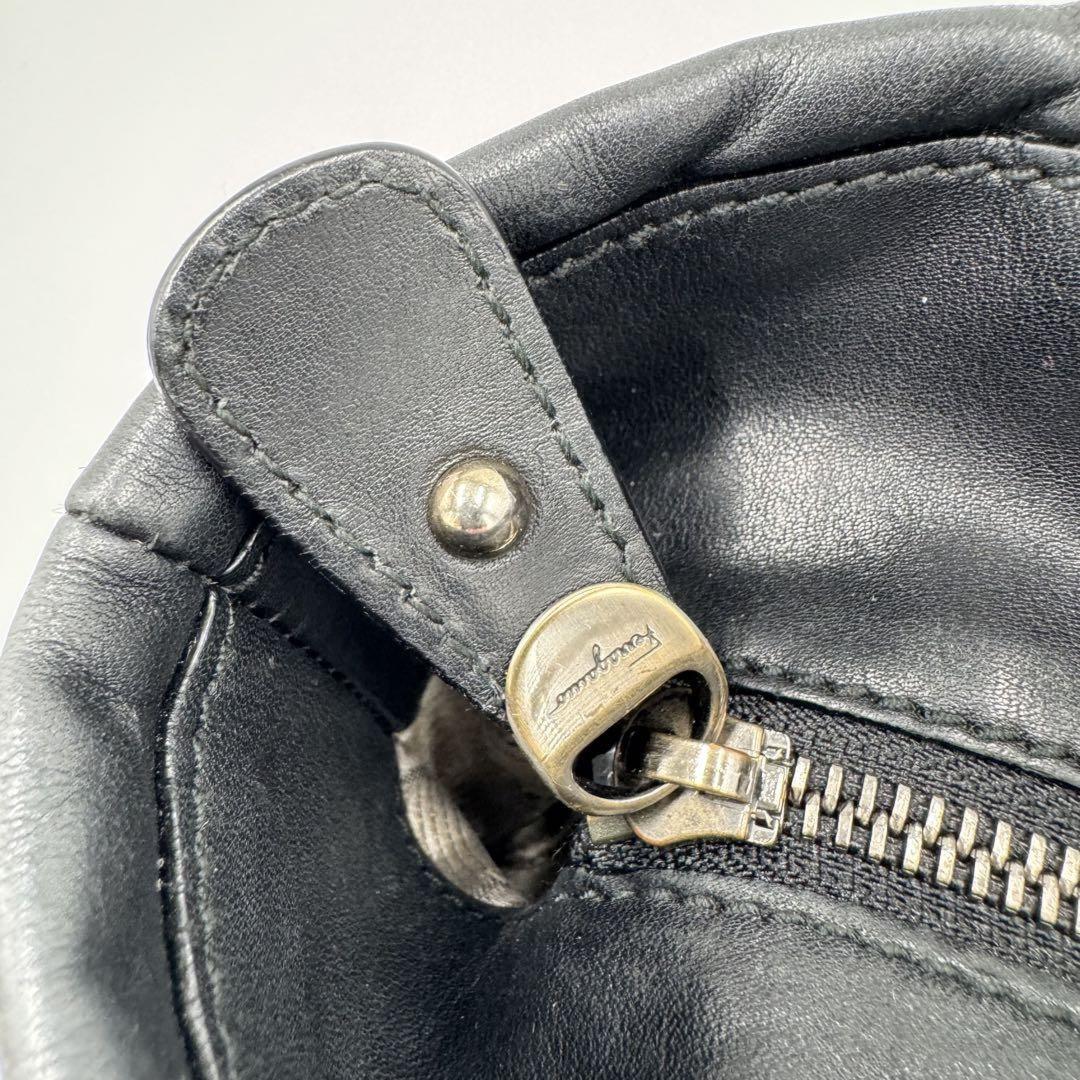 Salvatore Ferragamo Hand Bag Tote Purse Vara Ribbon Leather Black Authentic