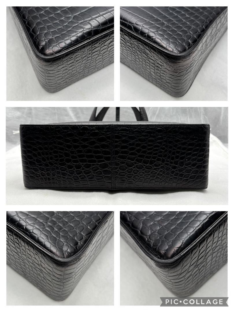 This bag is in excellent condition with no noticeable stains or scratches. There is no scuffing on the corners. The top of the handle shows some signs of wear, but the straps and handles are in good condition. The interior is also clean, so it's ready to use right away.