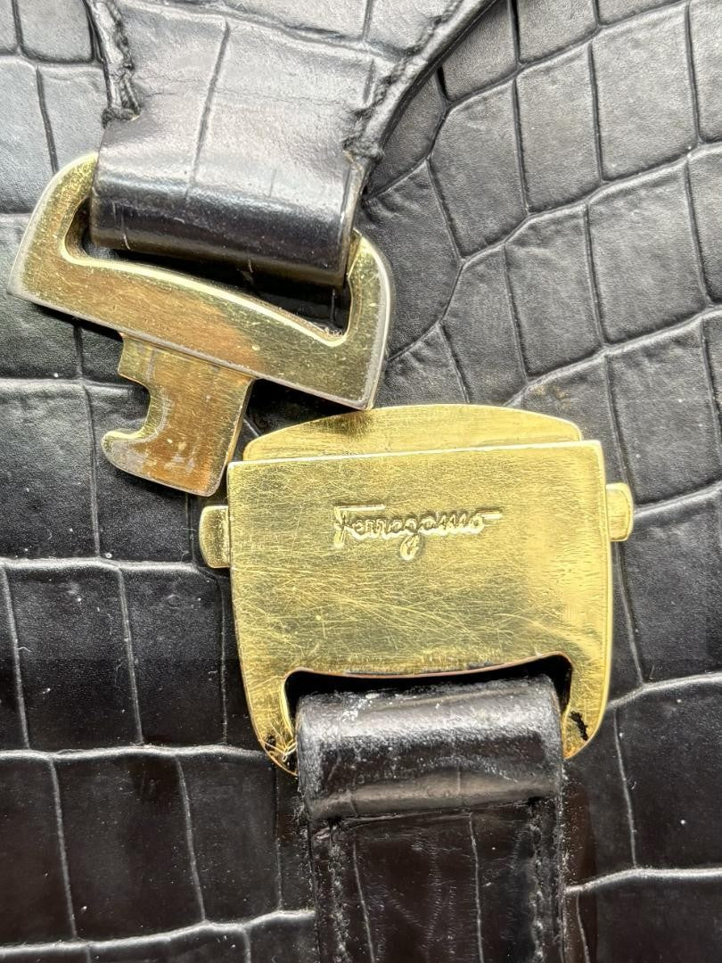 Salvatore Ferragamo Hand Shoulder Bag Tote Purse 2way Vara Leather Black Auth