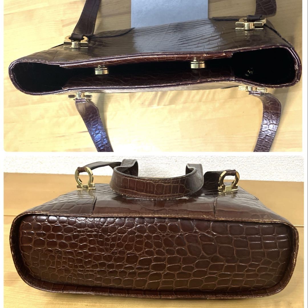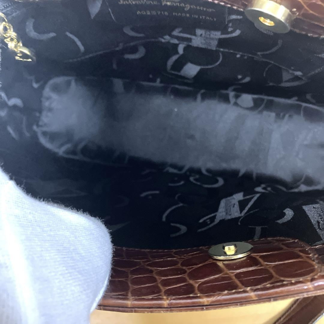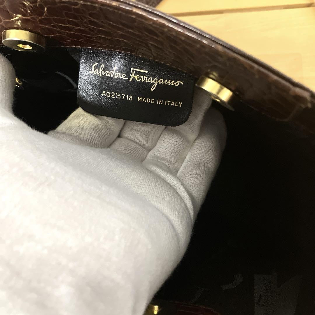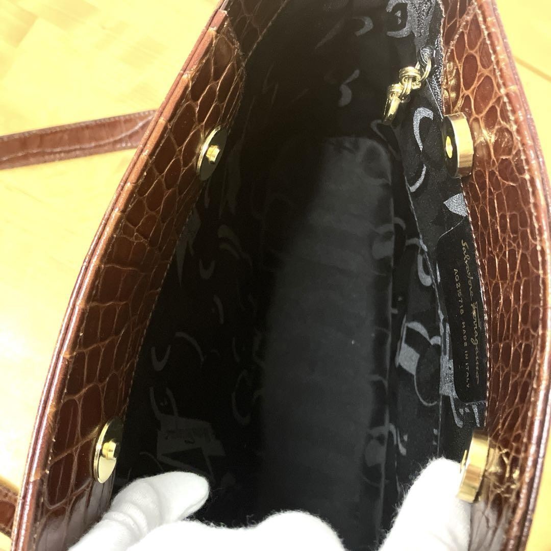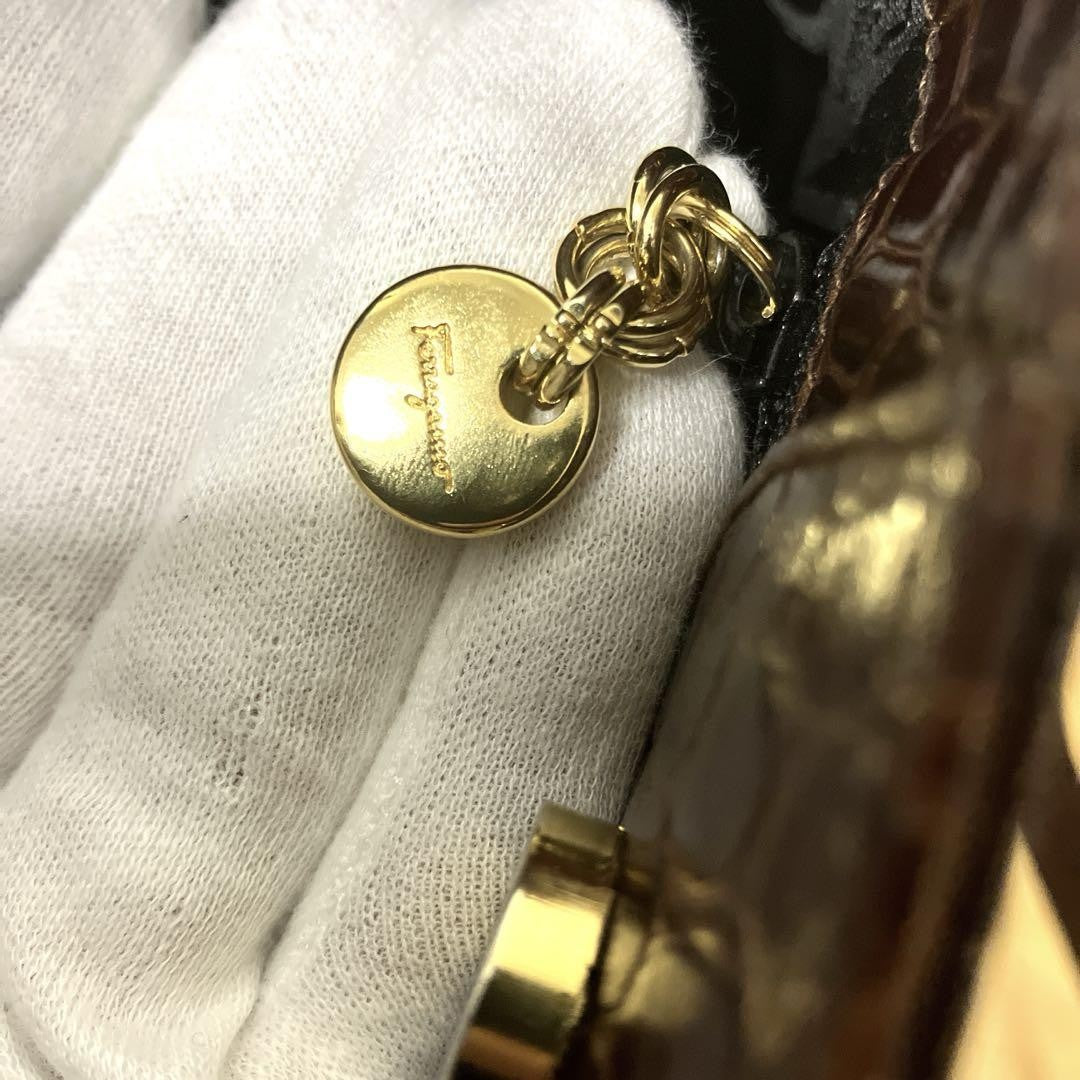 Salvatore Ferragamo Hand Shoulder Bag Tote Purse Gancini Leather Brown Authentic