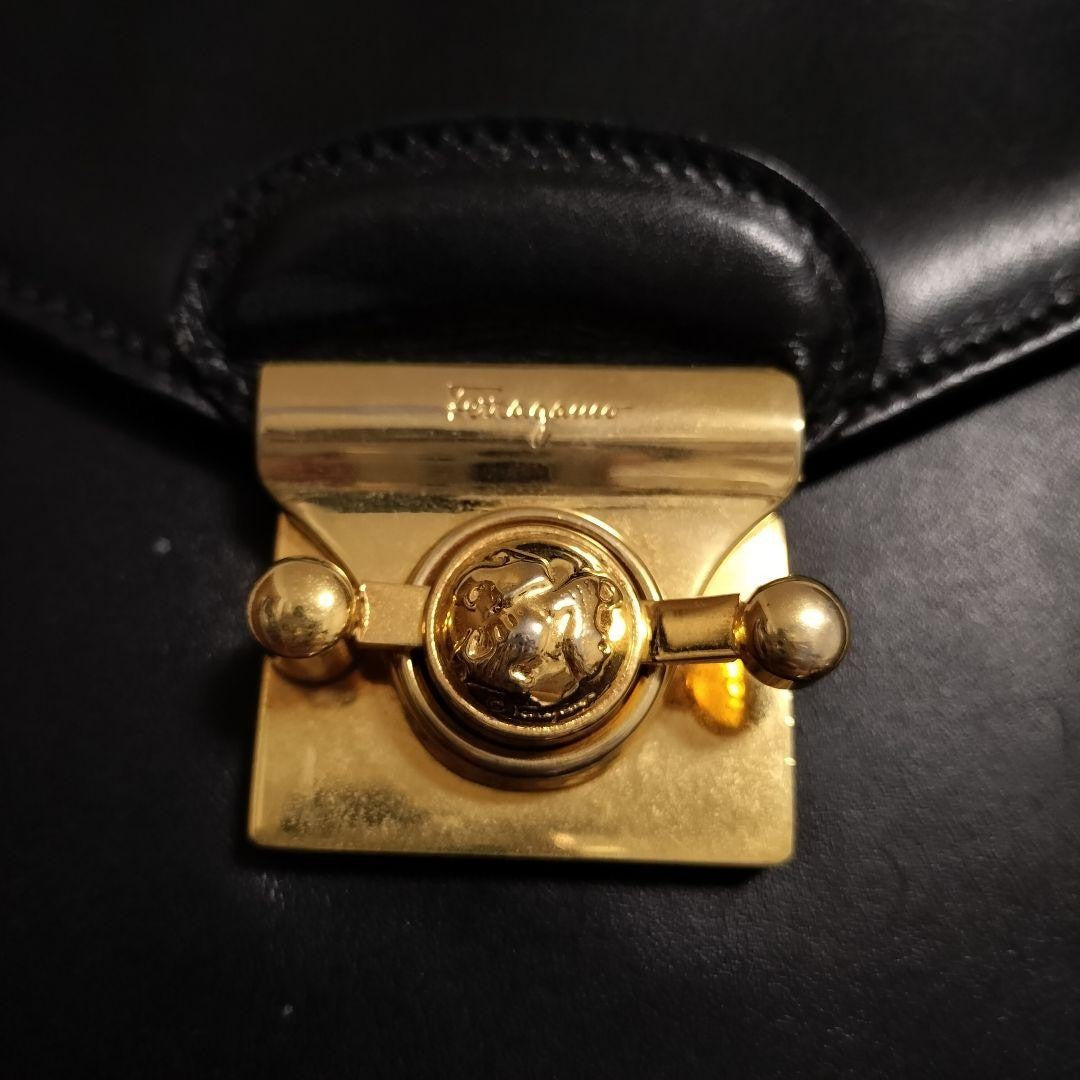 Salvatore Ferragamo Hand Shoulder Bag Tote Purse Leather Black Authentic