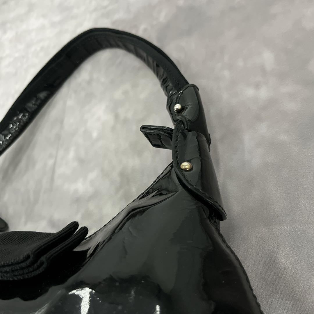 Salvatore Ferragamo Hand Shoulder Bag Tote Purse Vara Patent Leather Black Auth