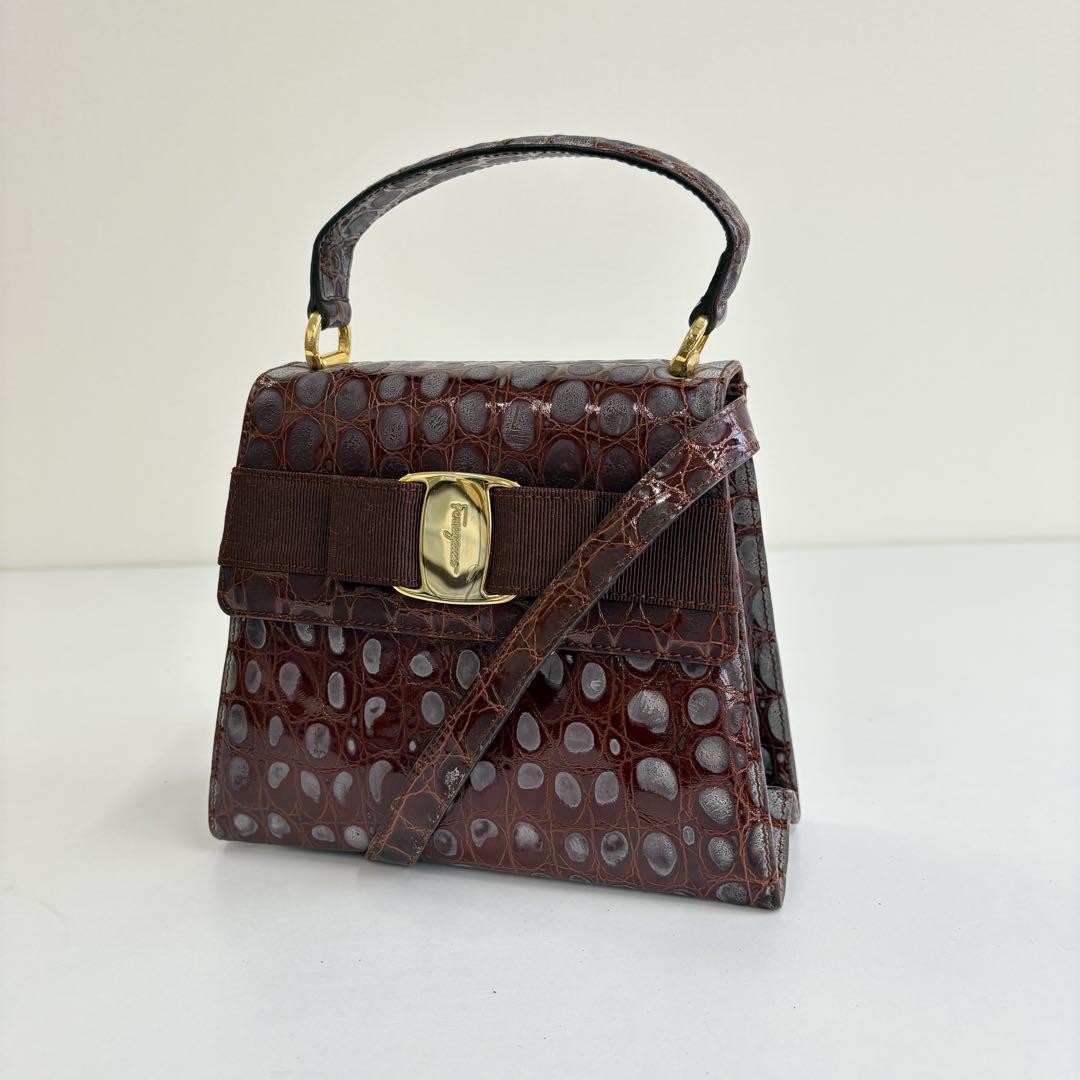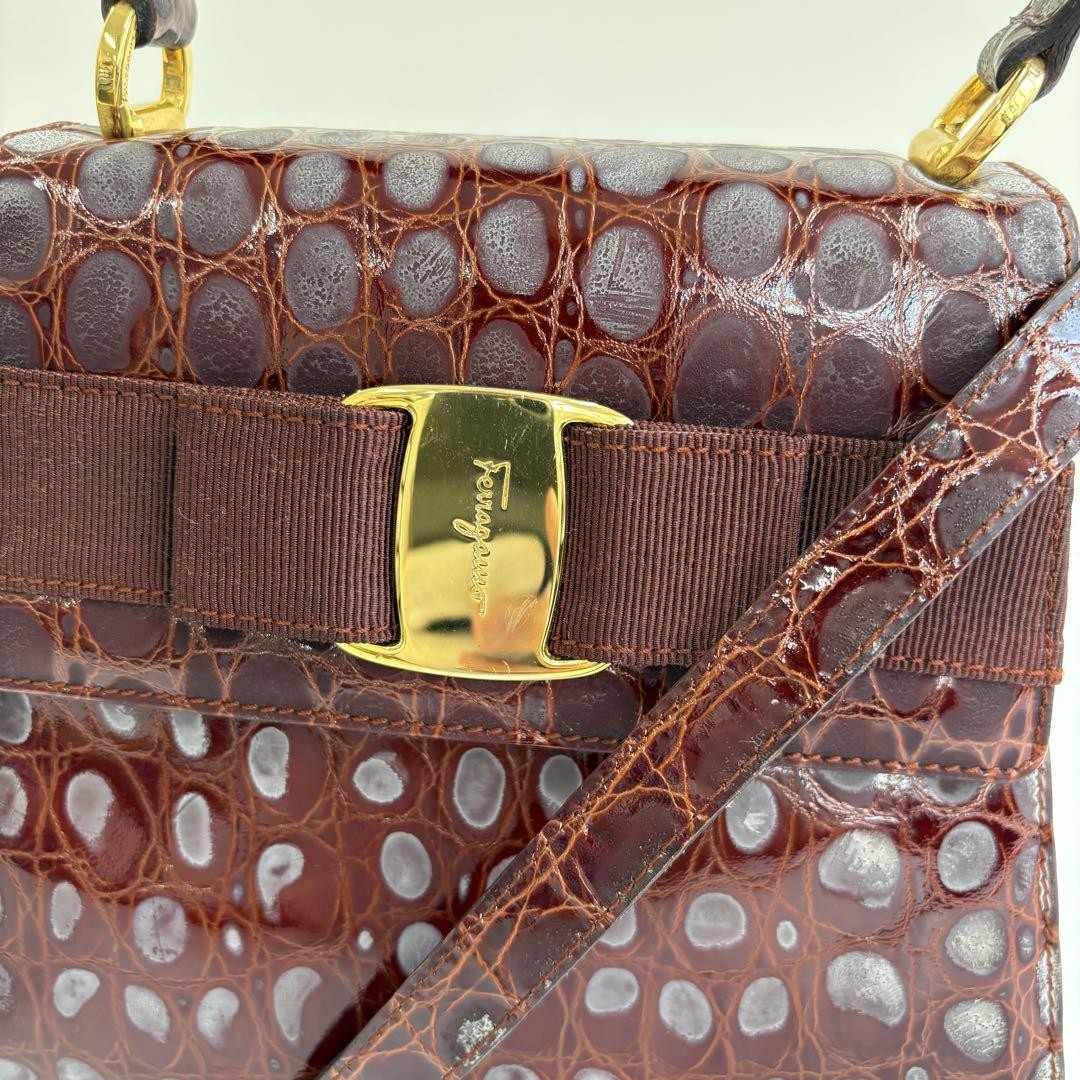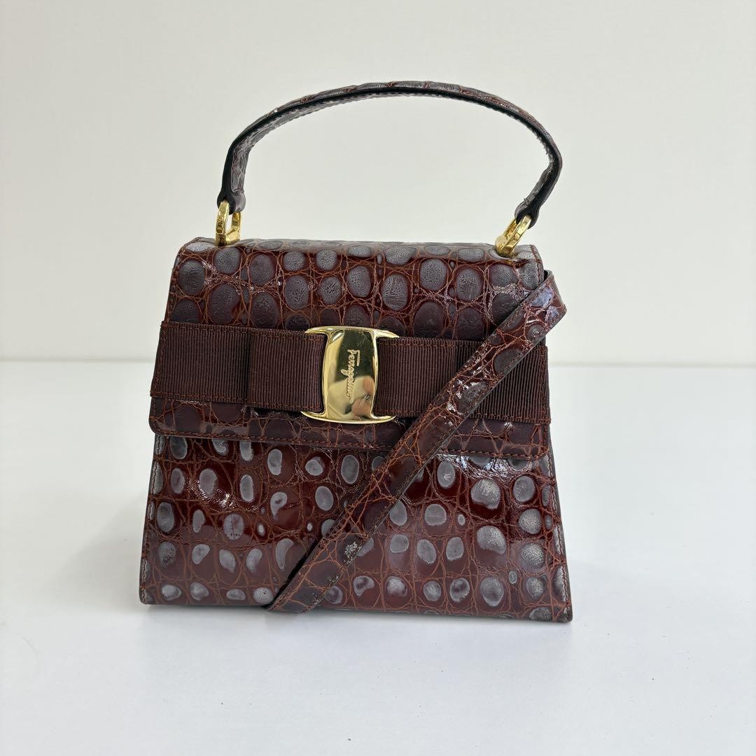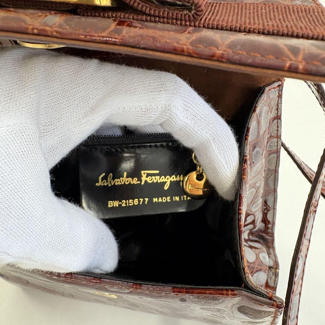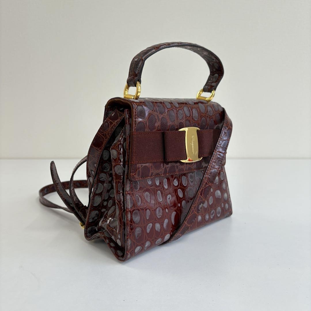 Salvatore Ferragamo Hand Shoulder Bag Tote Purse Vara Ribbon Red Authentic