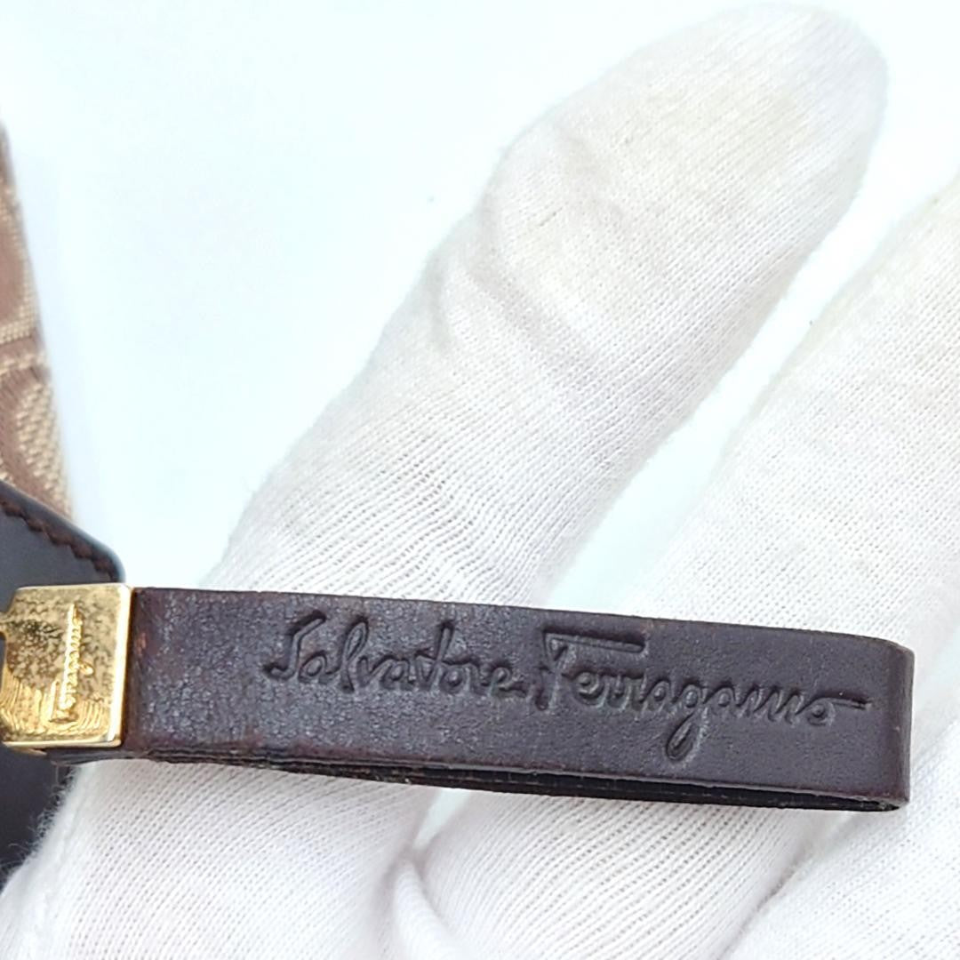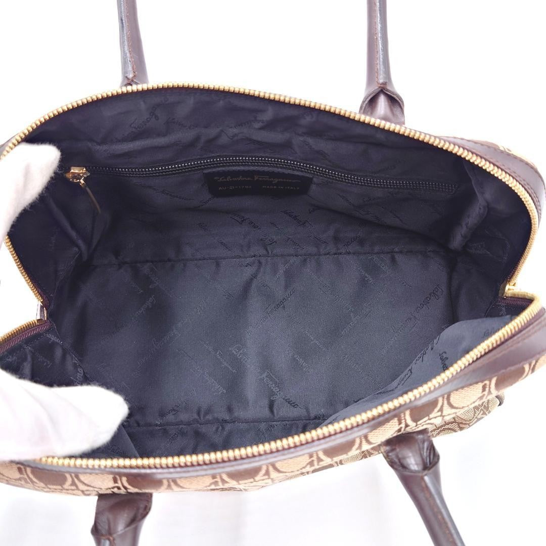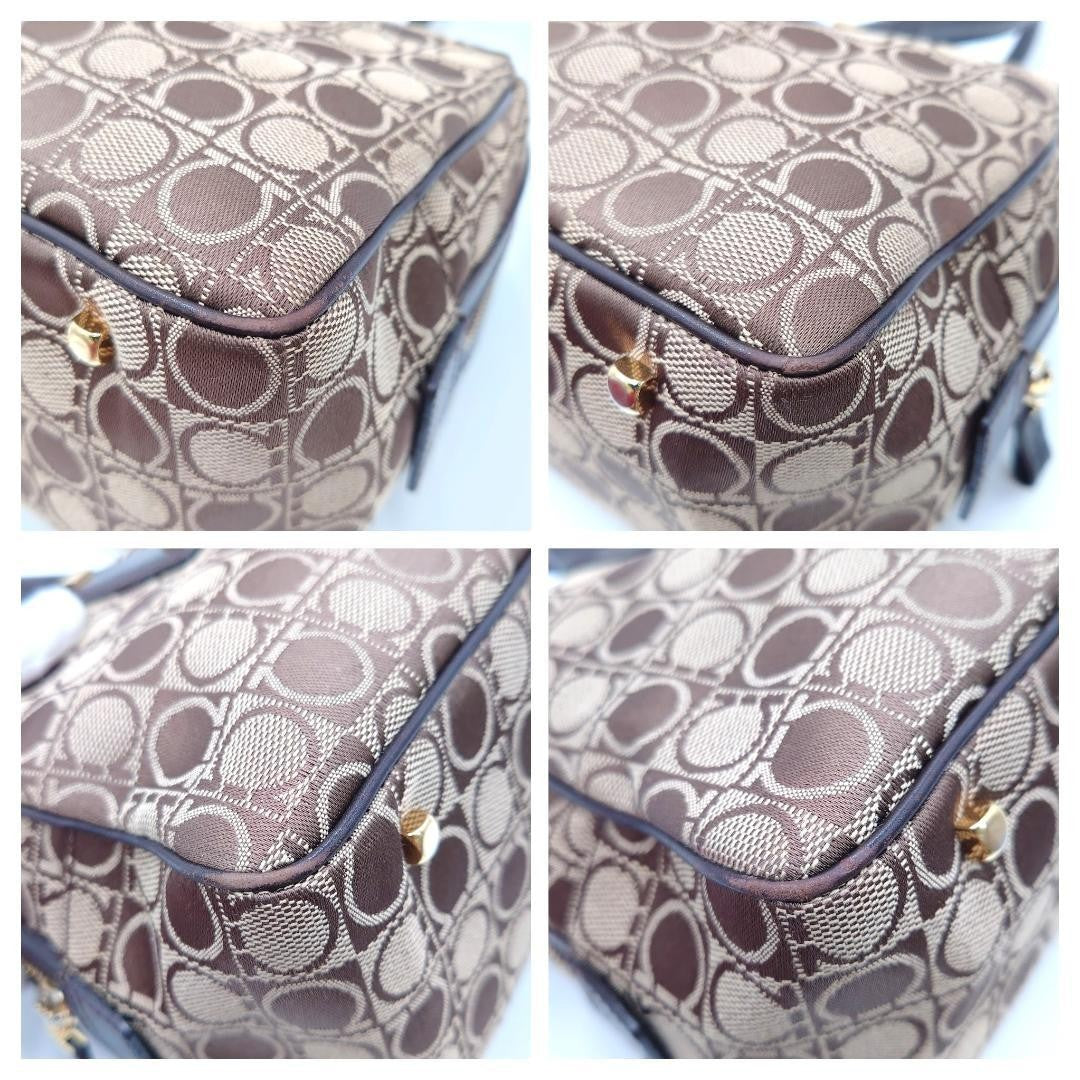 Salvatore Ferragamo handbag Purse Gancini Brown Canvas Leather mini boston bag