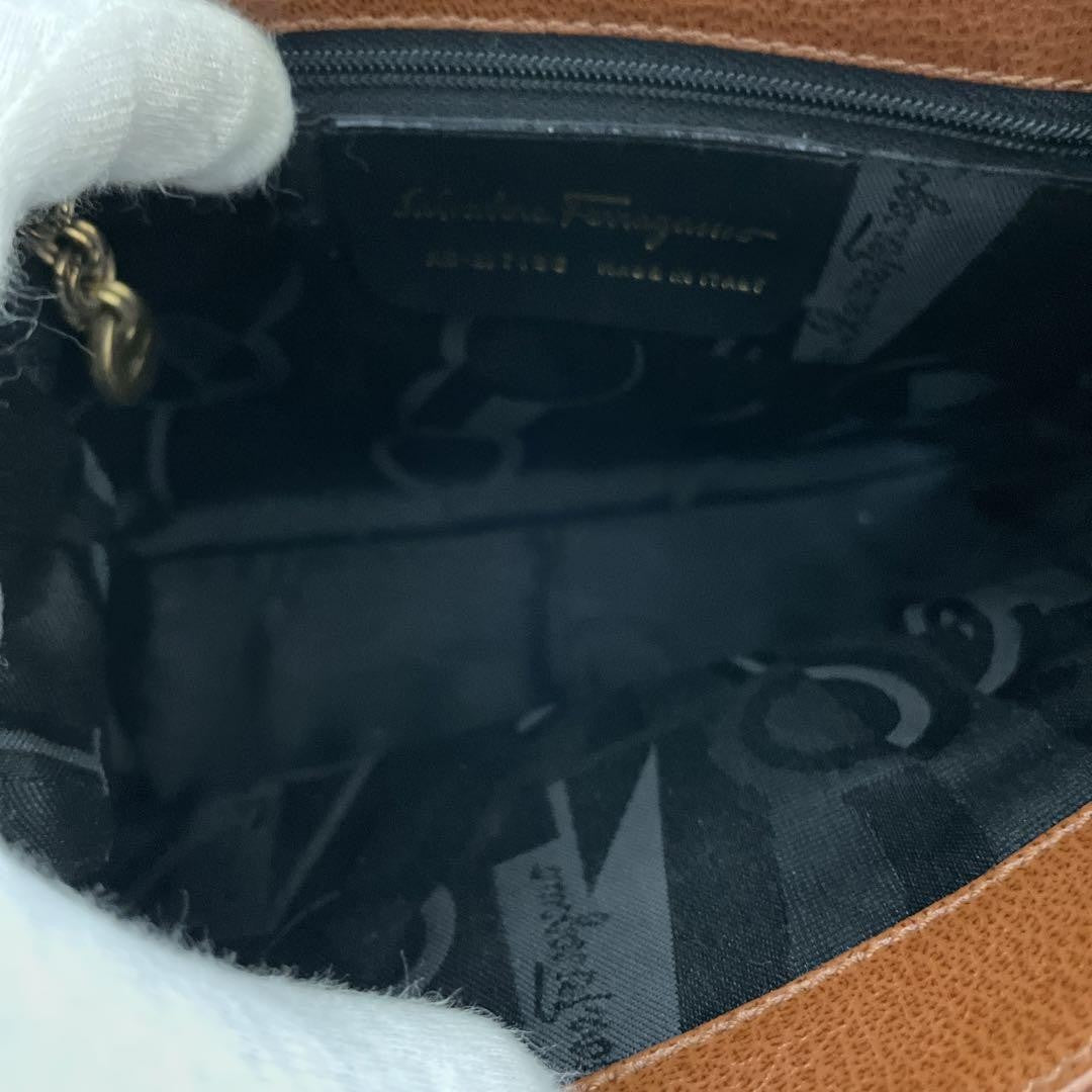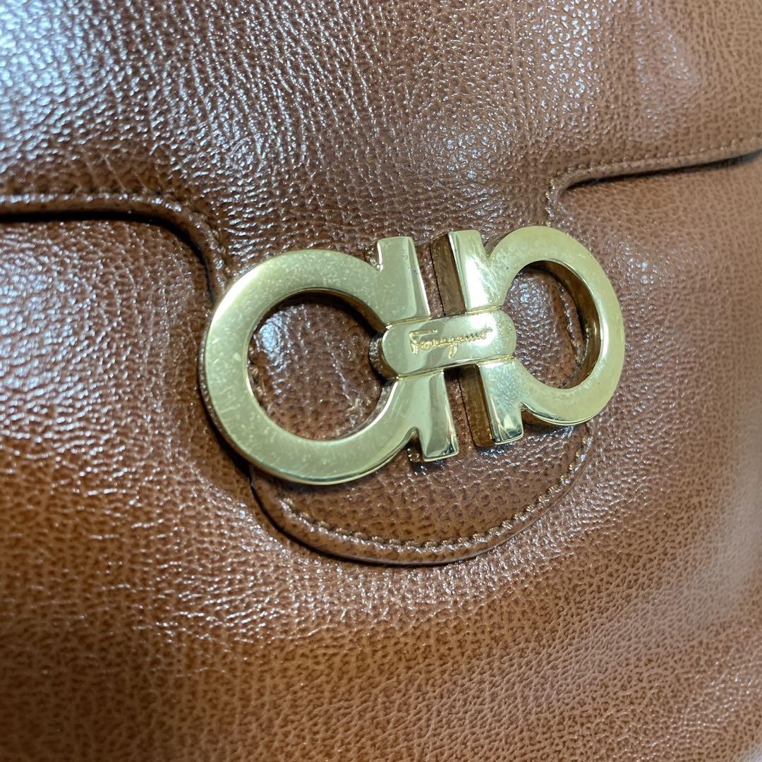Salvatore Ferragamo handbag Purse Gancini Brown Gold Women's Used Authentic