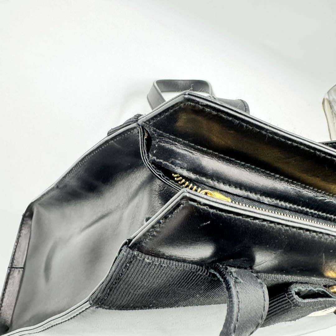 Salvatore Ferragamo handbag Tote Purse VARA RIBBON Leather Black Authentic Used