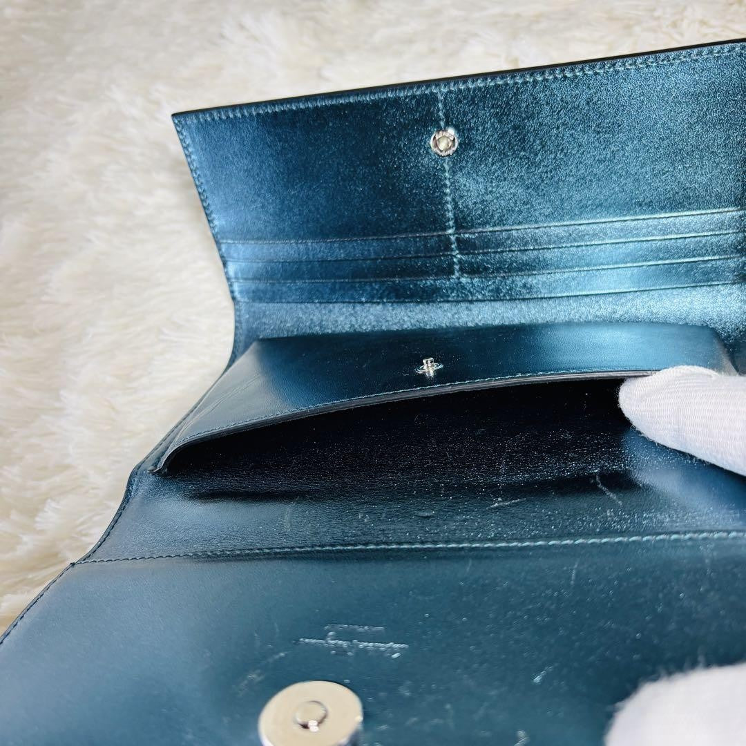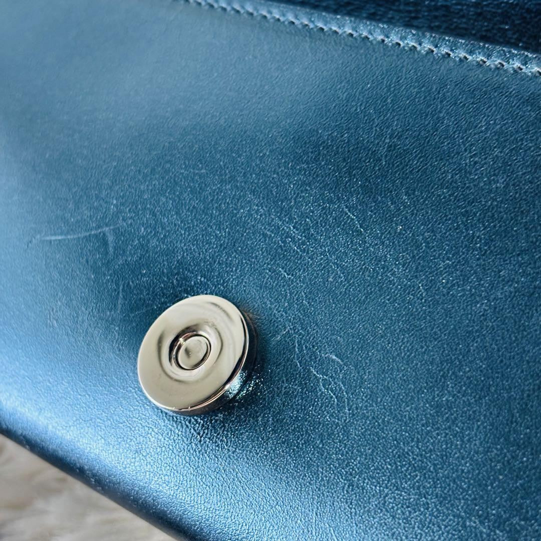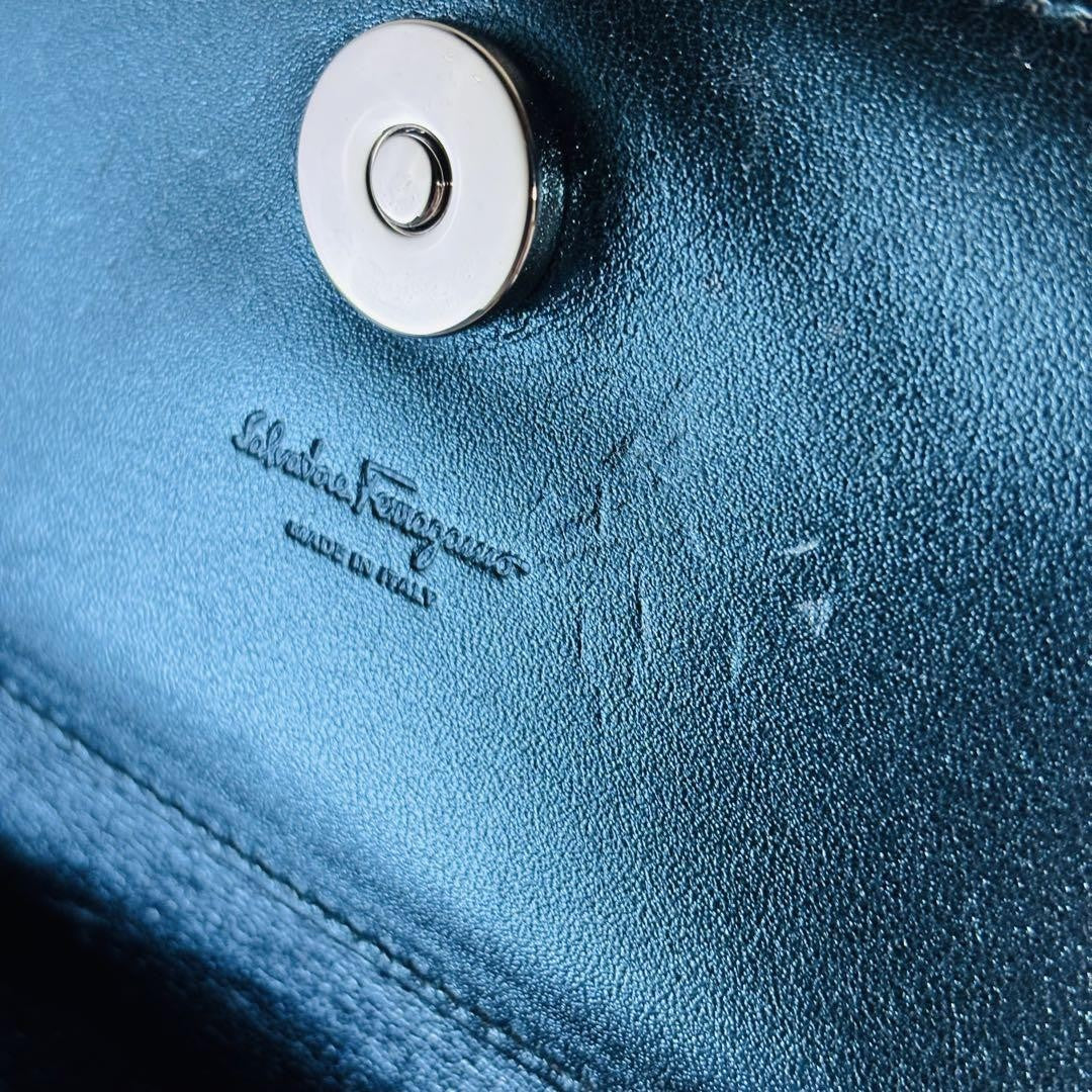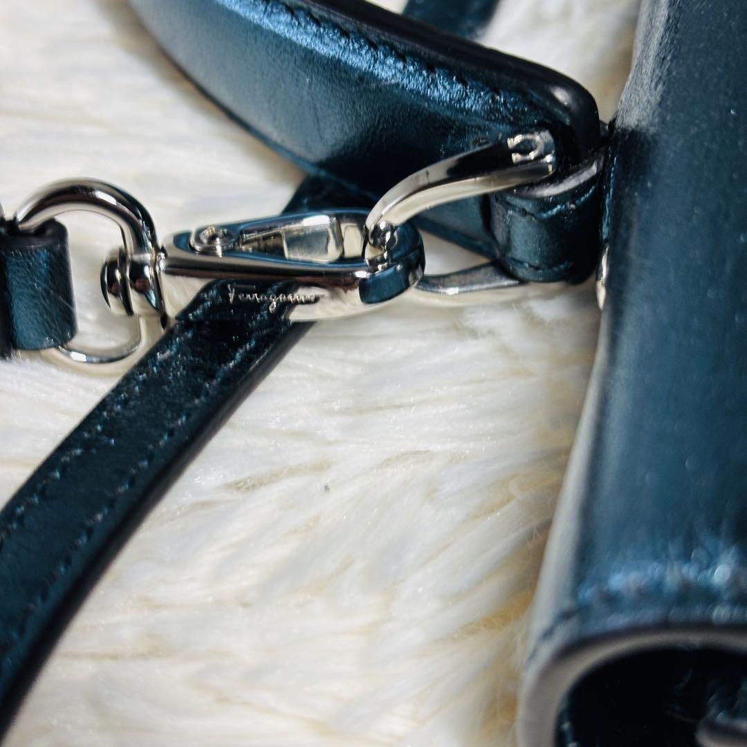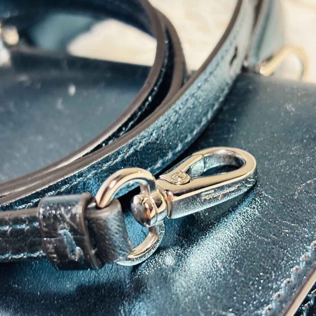 Salvatore Ferragamo Mini Shoulder Wallet 2way Gancini Metallic Blue Authentic