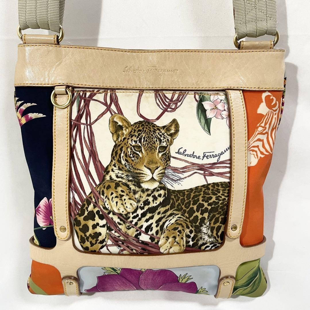 Salvatore Ferragamo Shoulder Bag Purse Canvas Leather Multicolor White Authentic