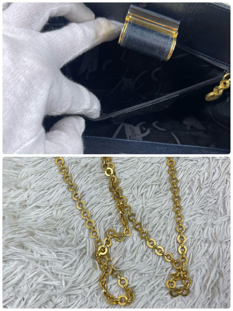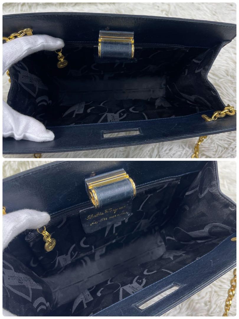 Salvatore Ferragamo Shoulder Bag Purse Chain Leather Navy Authentic