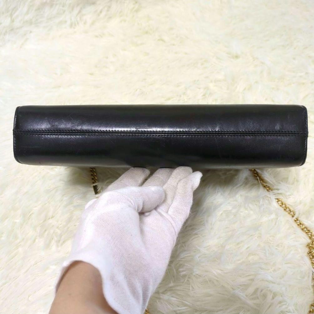 Salvatore Ferragamo shoulder bag Purse Gancini Black Gold chain Leather Used