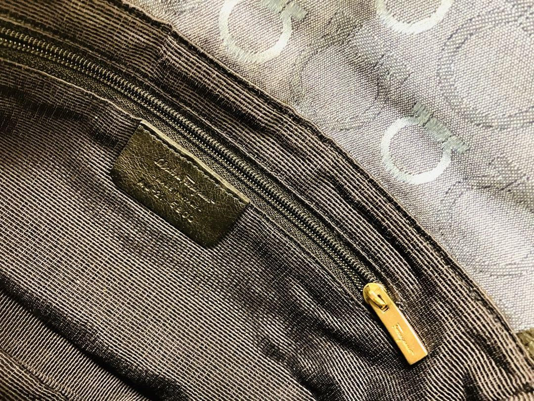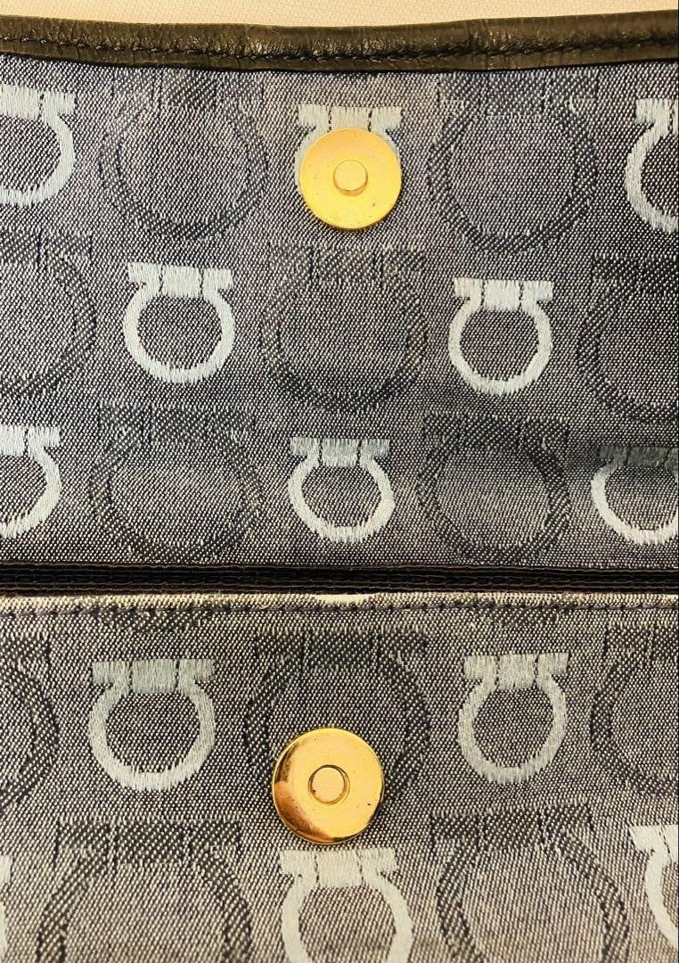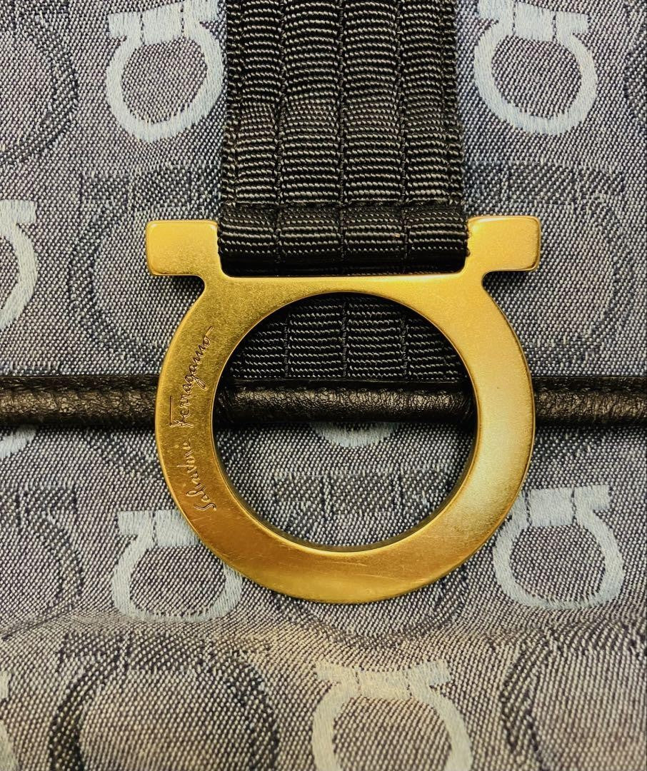 Salvatore Ferragamo Shoulder Bag Purse Gancini Canvas Leather Blue Black Auth