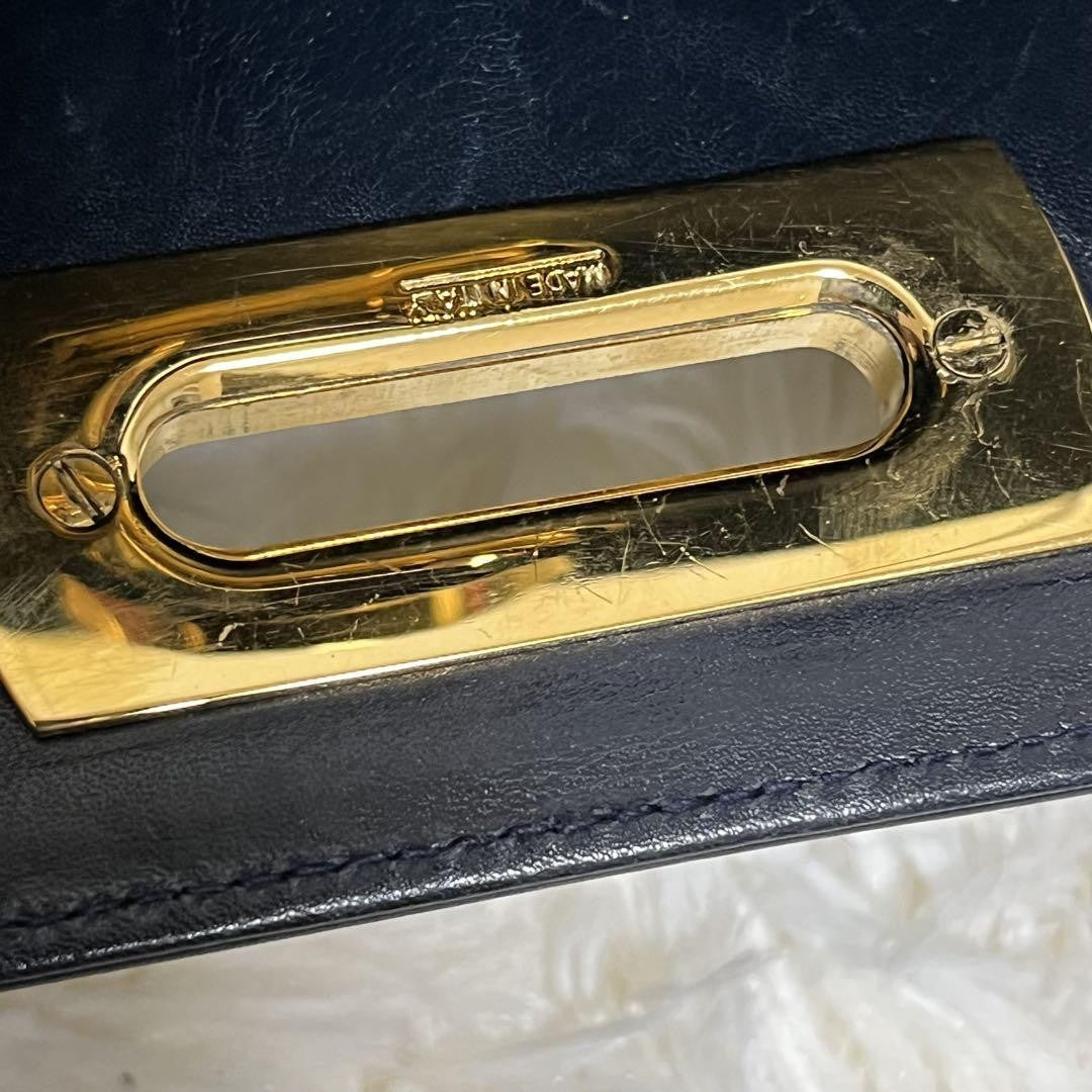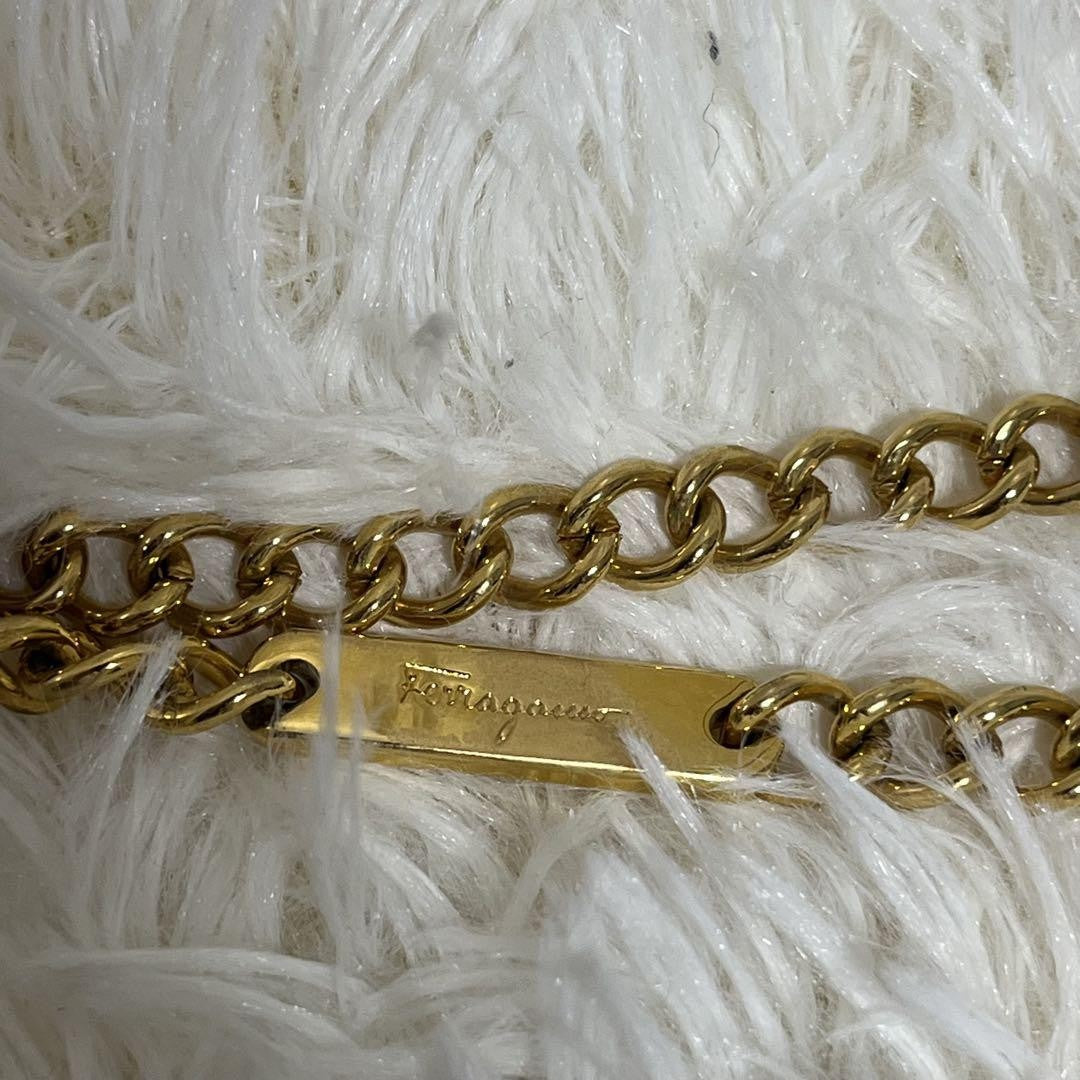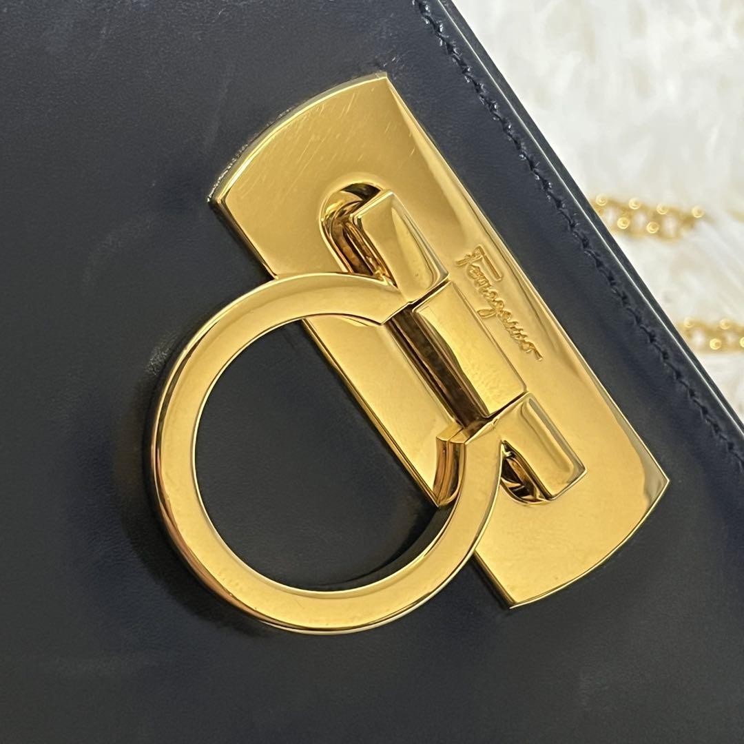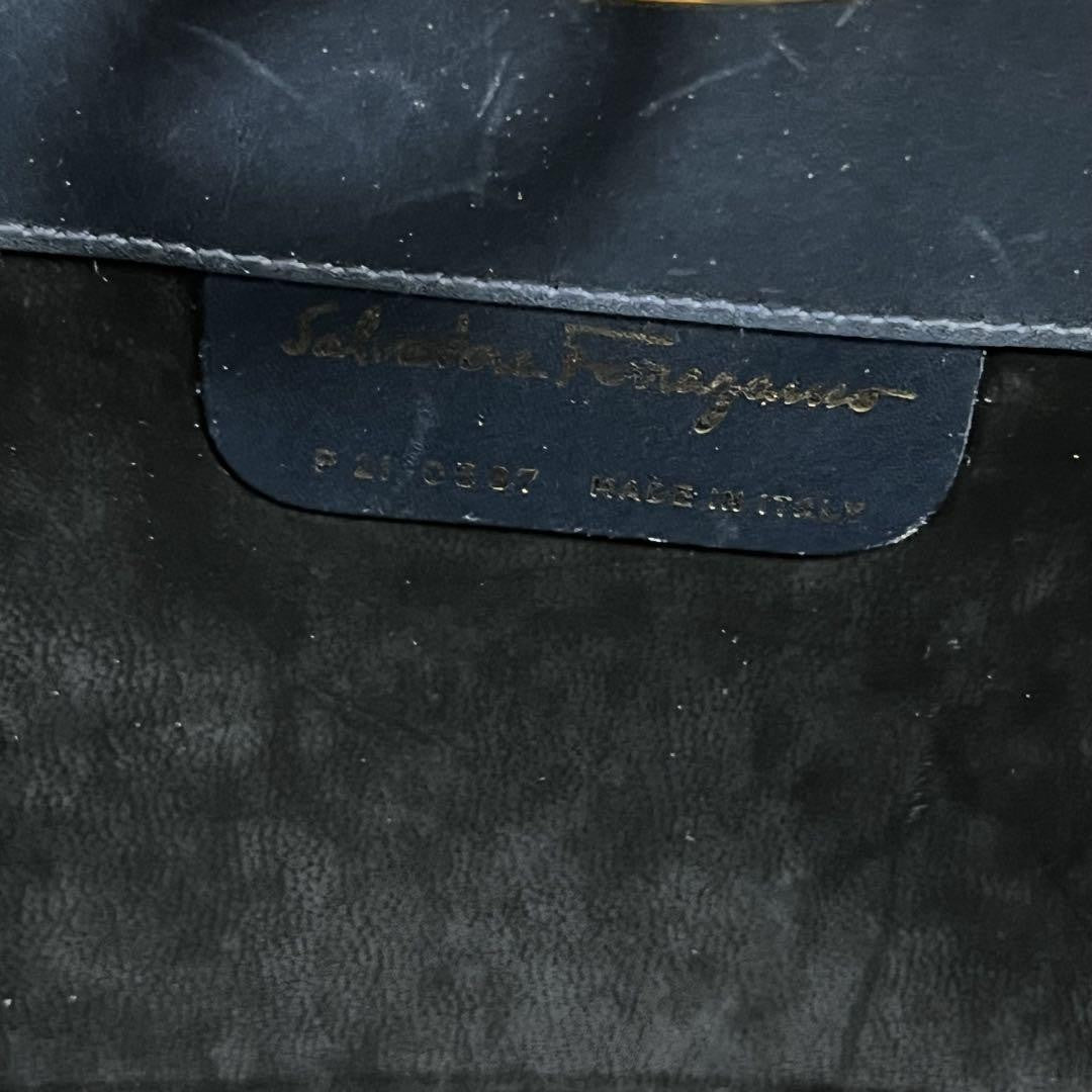 Salvatore Ferragamo shoulder bag Purse Gancini Dark Navy chain Leather Authentic