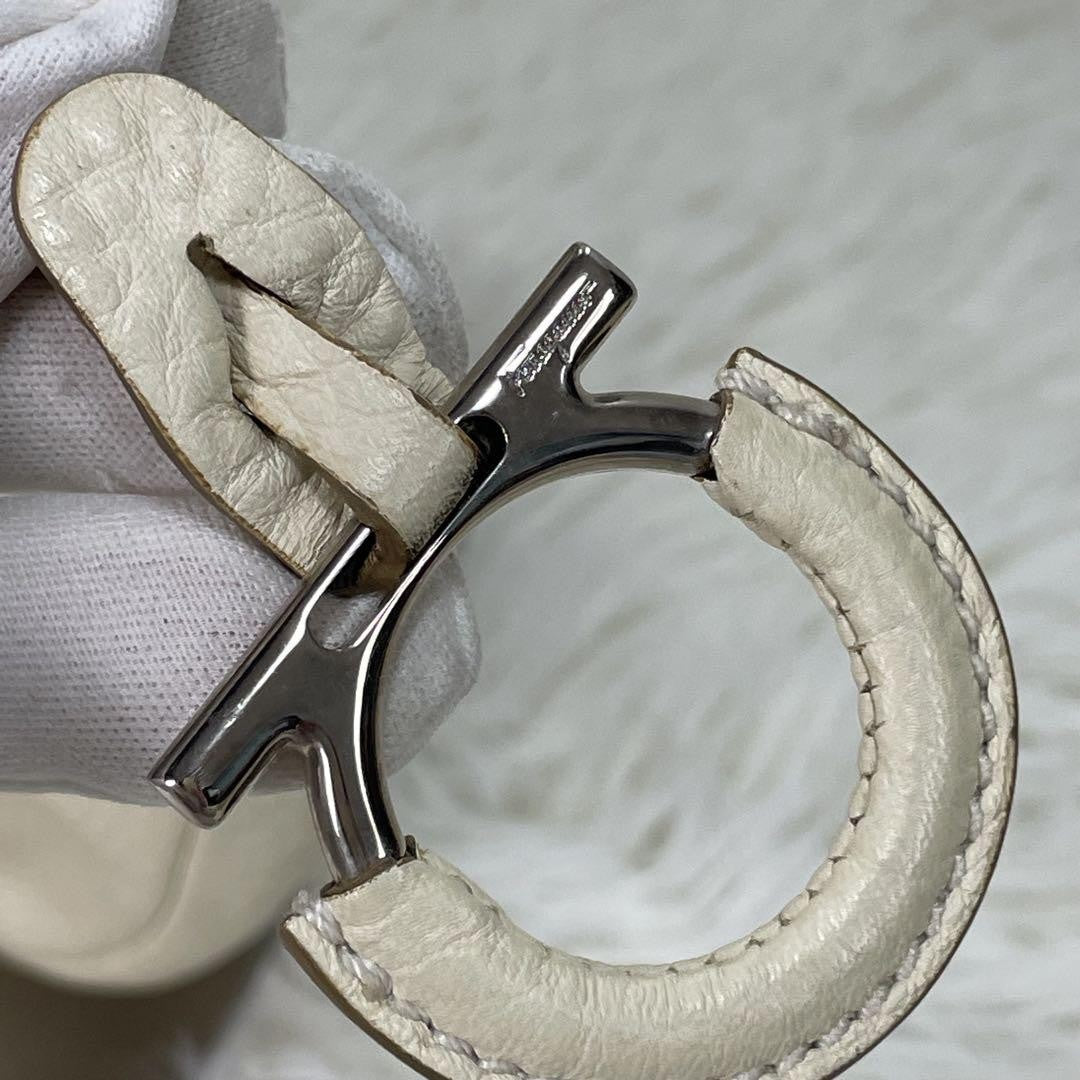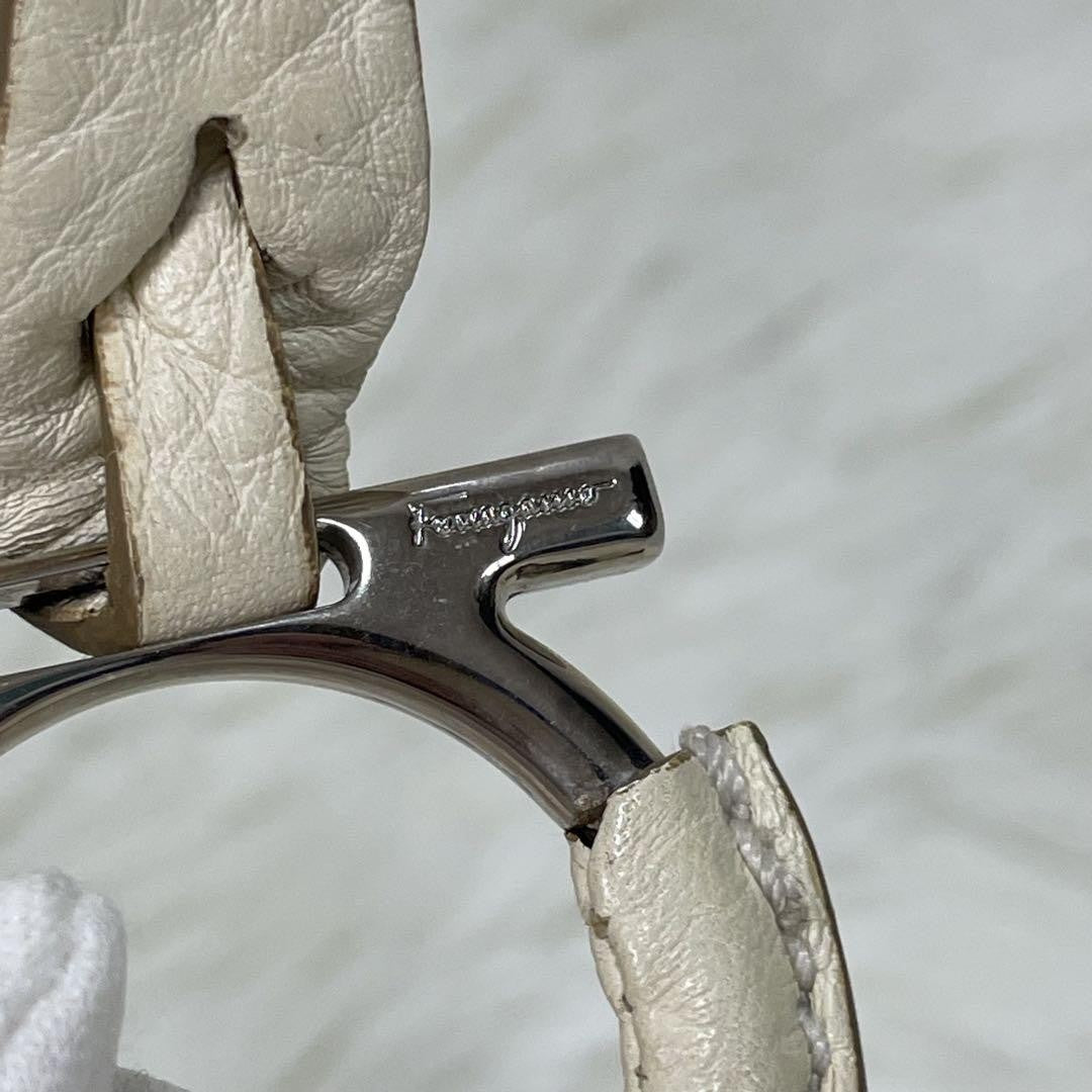 Salvatore Ferragamo shoulder bag Purse Gancini Ivory Silver Leather Authentic