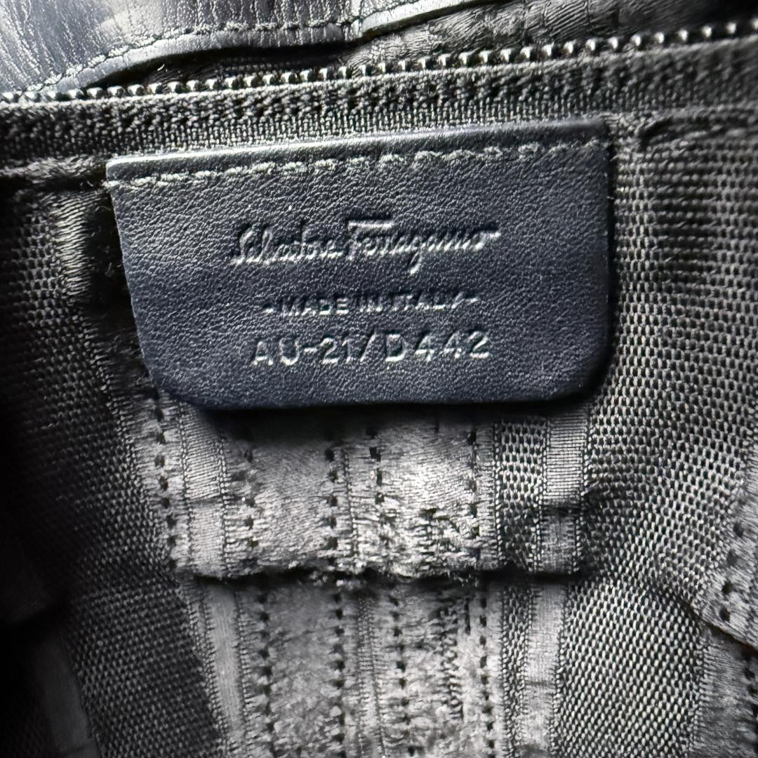 Salvatore Ferragamo Shoulder Bag Purse Gancini Leather Black Authentic