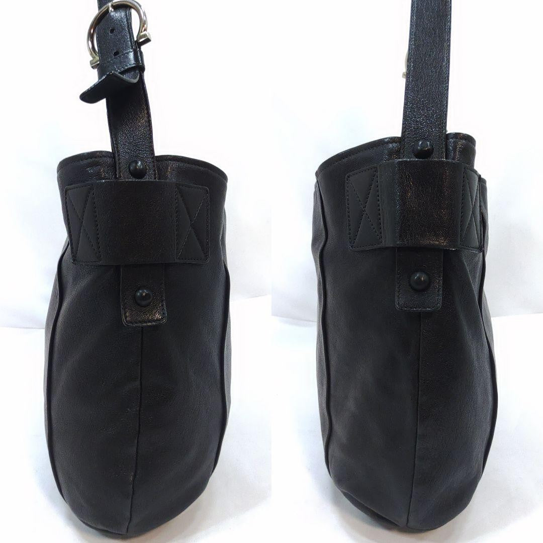 Salvatore Ferragamo Shoulder Bag Purse Gancini Leather Black Authentic