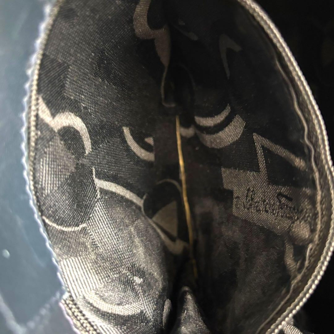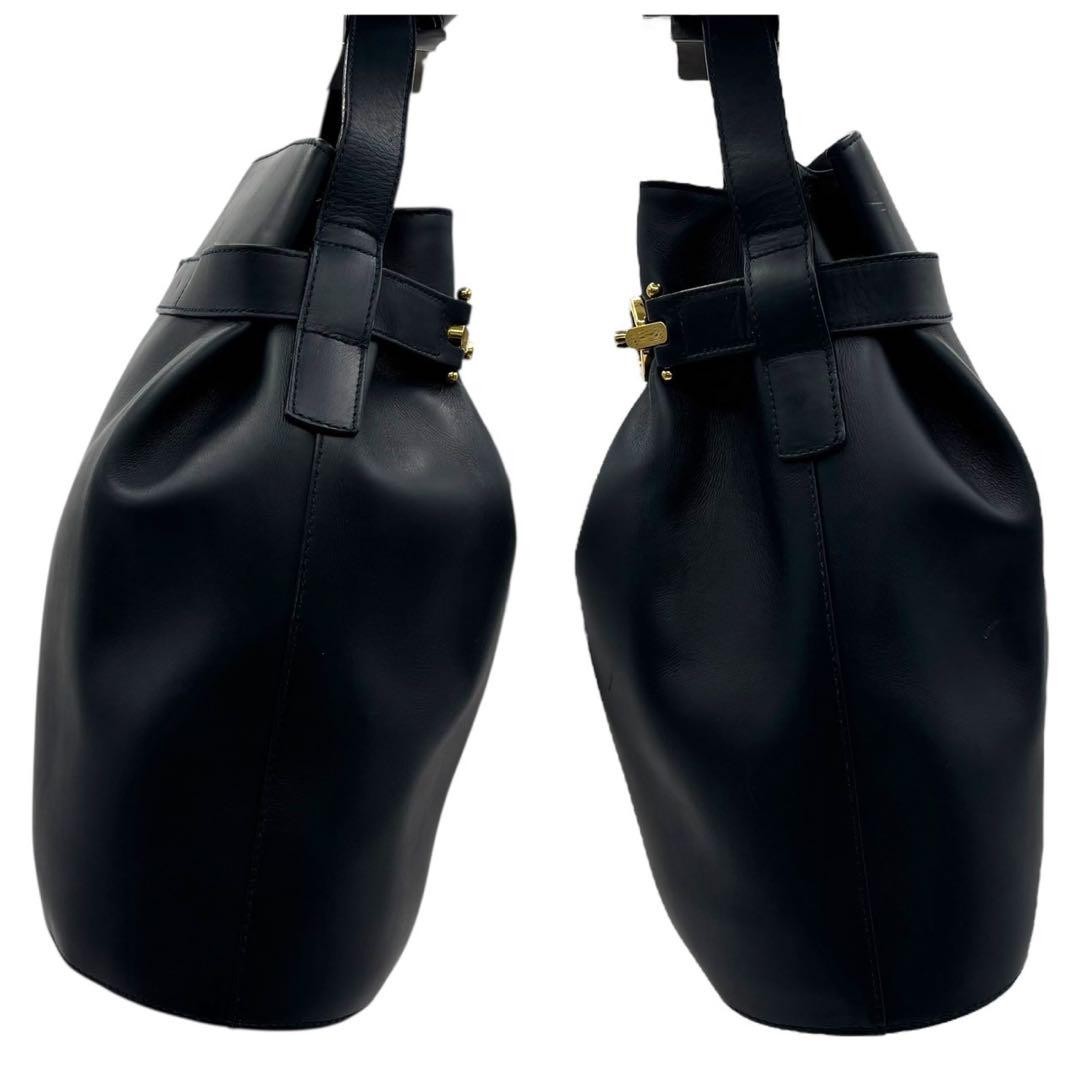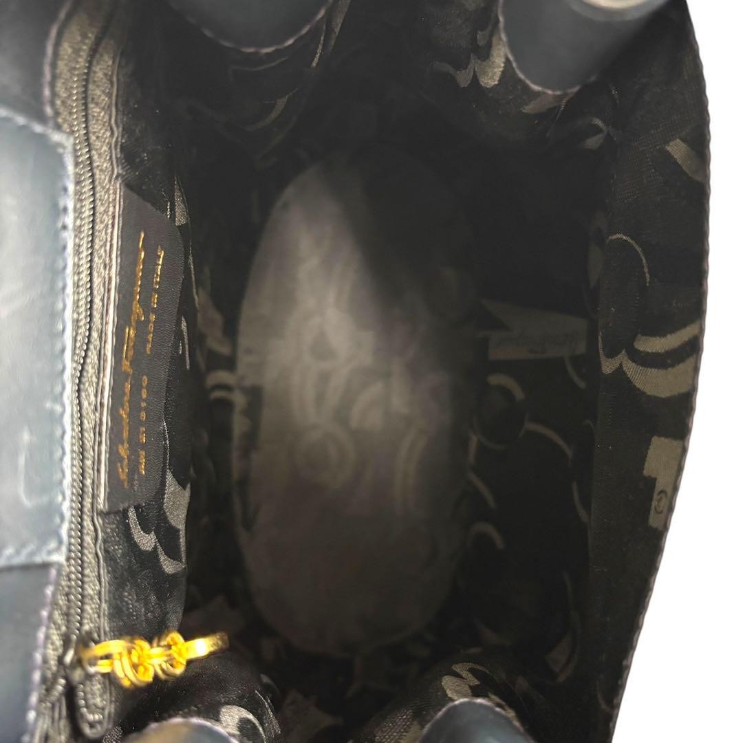 Salvatore Ferragamo Shoulder Bag Purse Gancini Leather Dark Navy Authentic