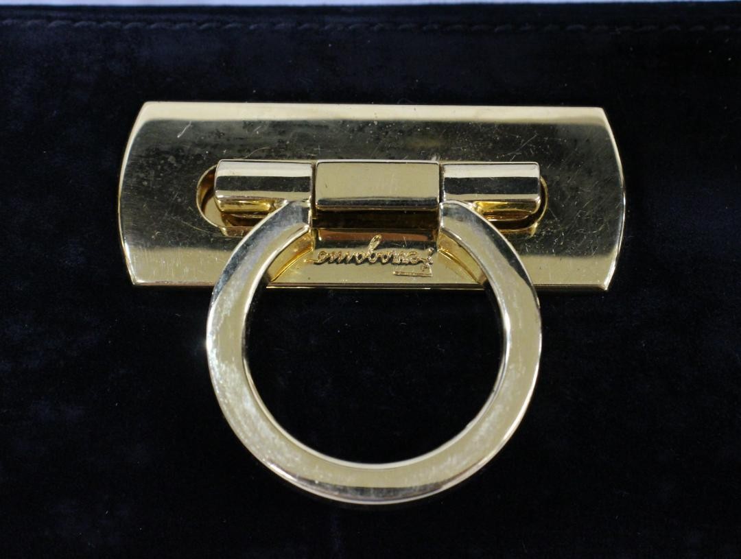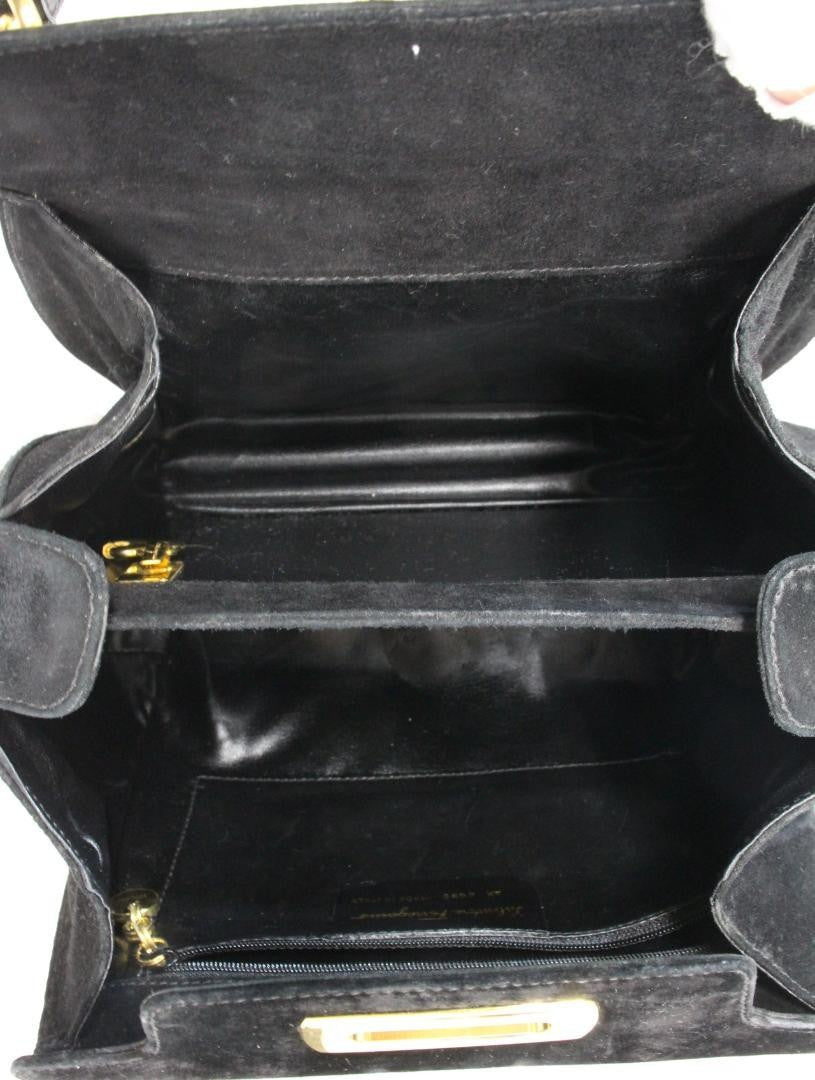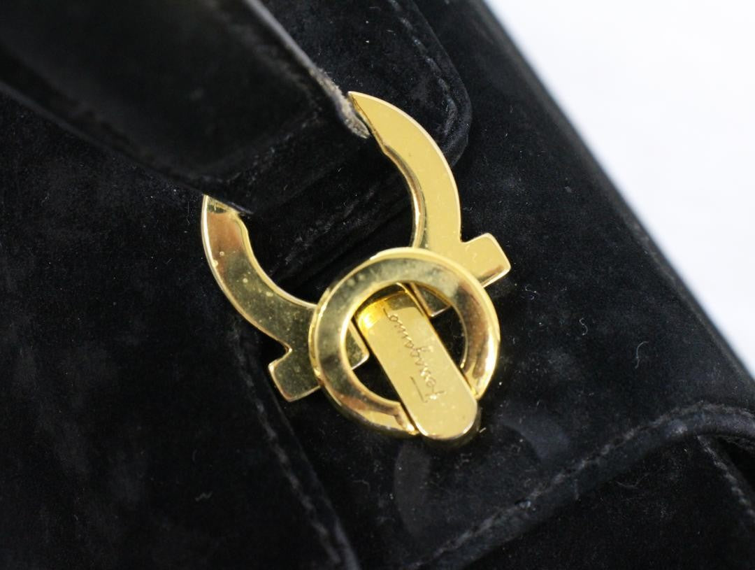Salvatore Ferragamo Shoulder Bag Purse Gancini Suede Black Authentic
