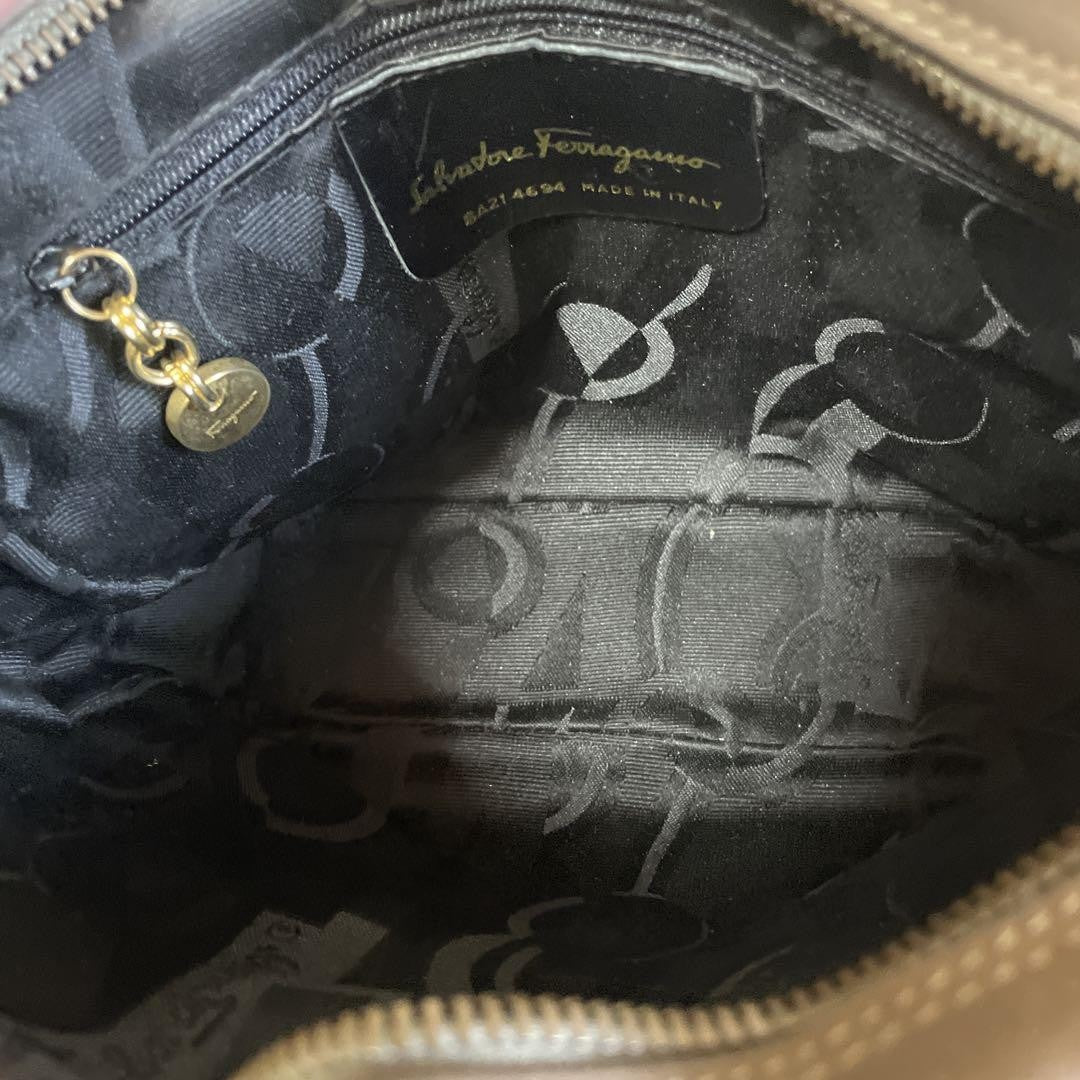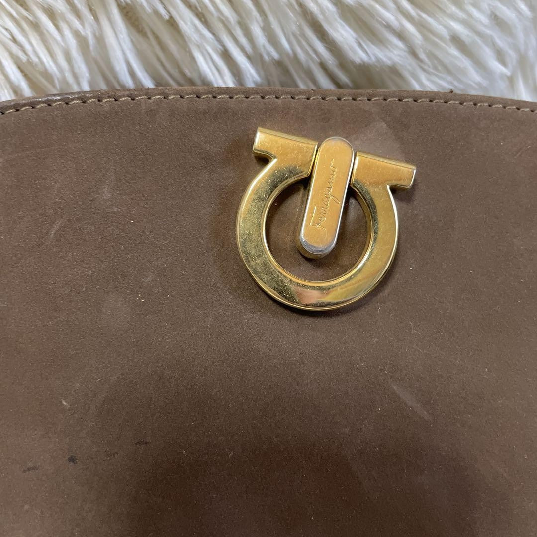 Salvatore Ferragamo Shoulder Bag Purse Gancini Suede Brown Authentic