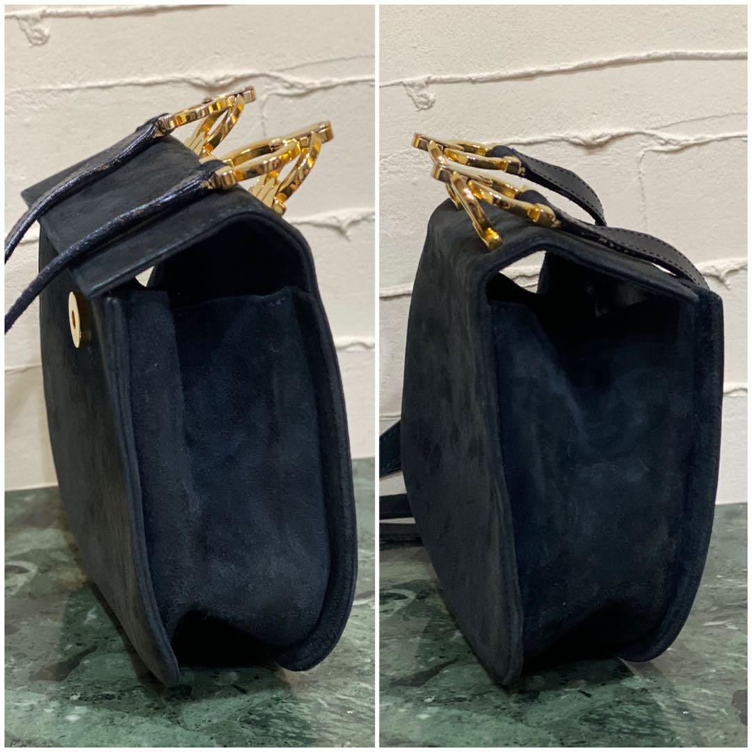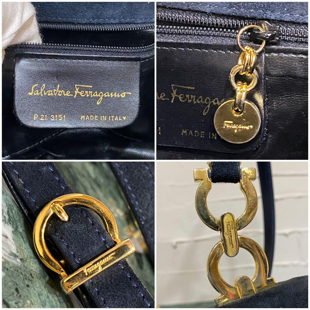 Salvatore Ferragamo Shoulder Bag Purse Gancini Suede Leather Authentic