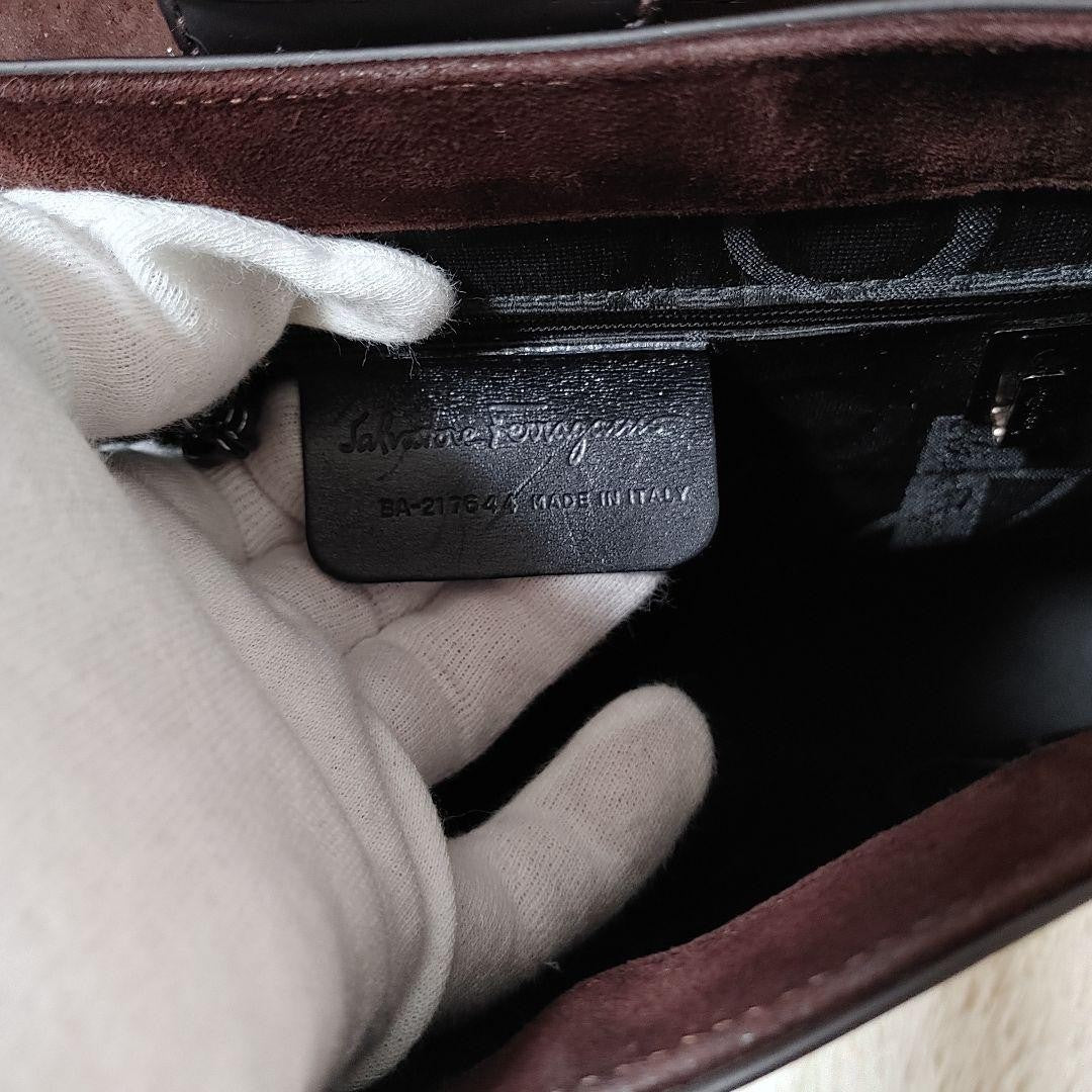Salvatore Ferragamo shoulder bag Purse VARA Dark Brown Leather Authentic Women's