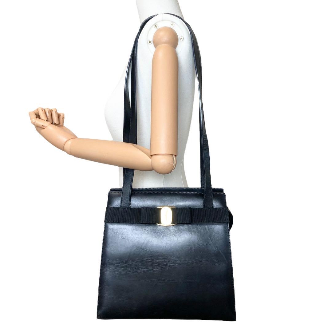 Salvatore Ferragamo shoulder bag Purse VARA RIBBON Black Authentic Leather