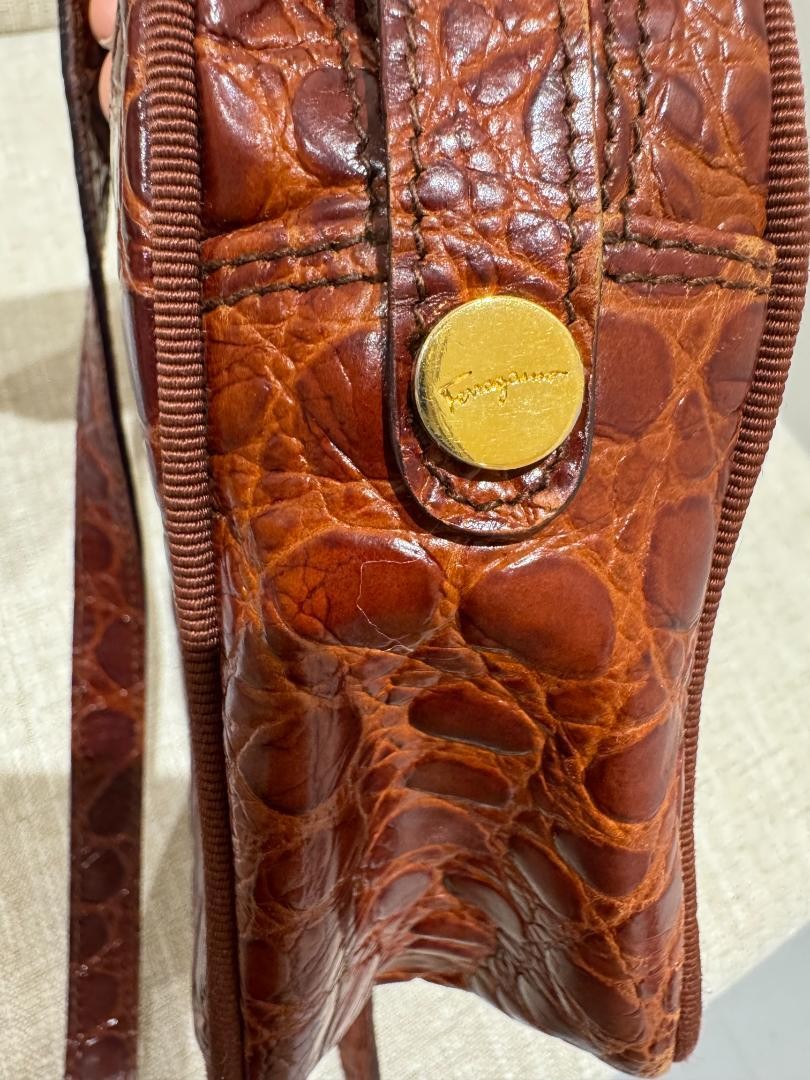Salvatore Ferragamo Shoulder Bag Purse Vara Ribbon Leather Brown Authentic