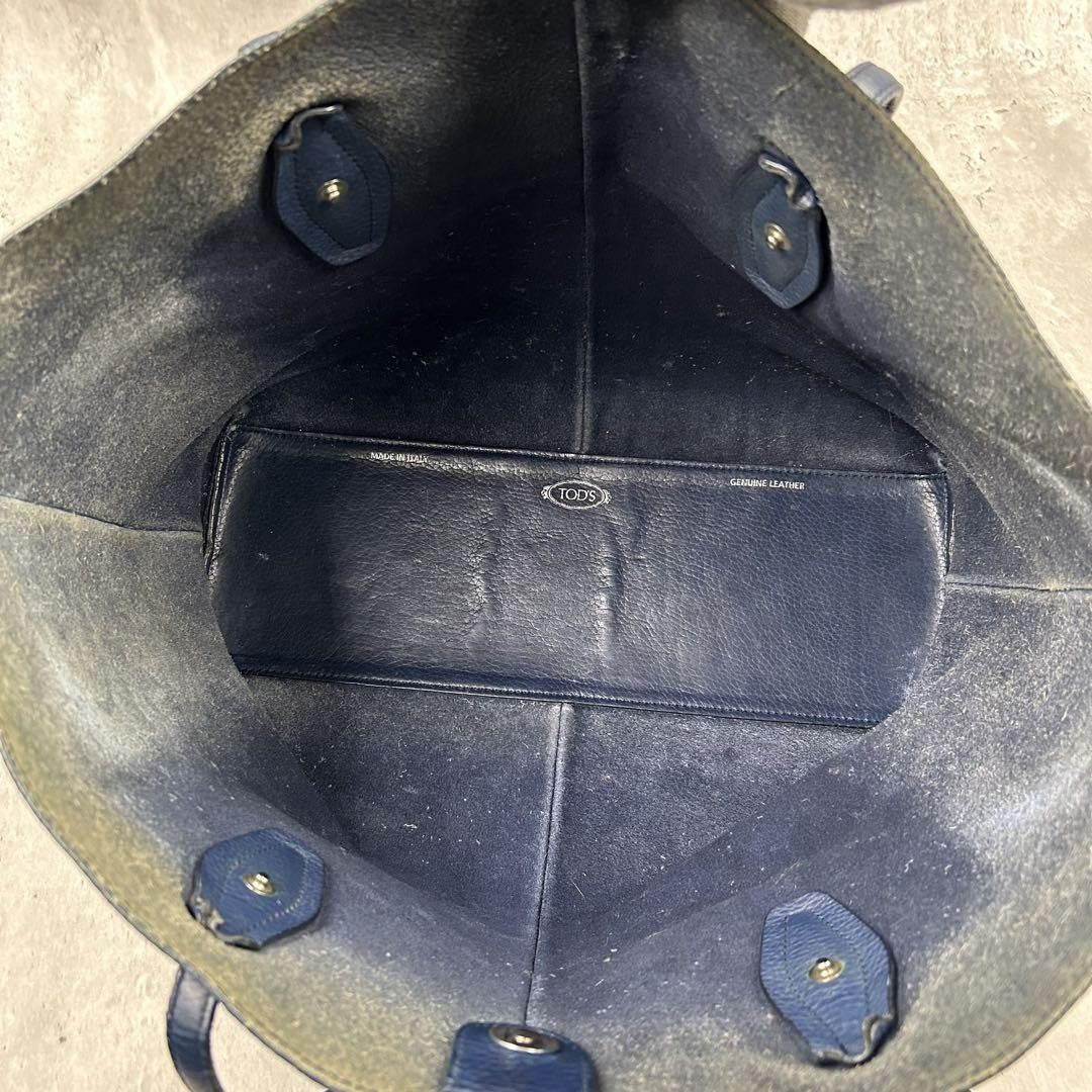 TOD'S Hand Bag Tote Purse 2way JOY Leather Navy Authentic