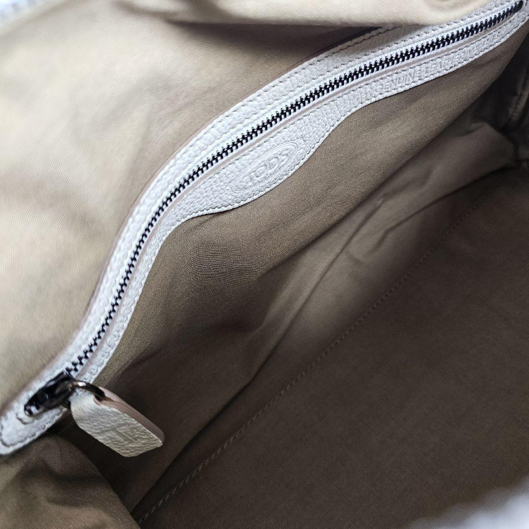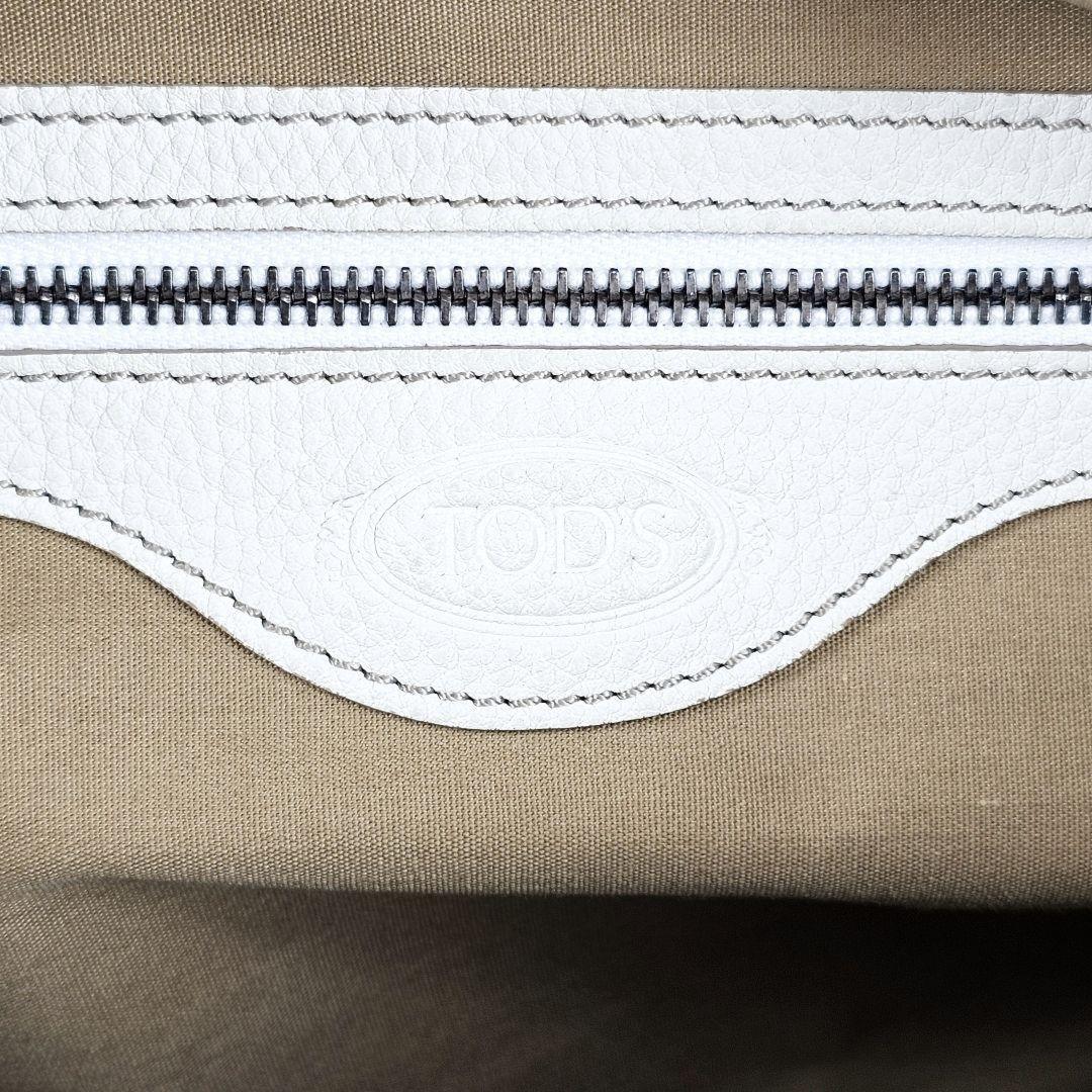 TOD'S Hand Bag Tote Purse Boston Bag Logo Leather White Authentic