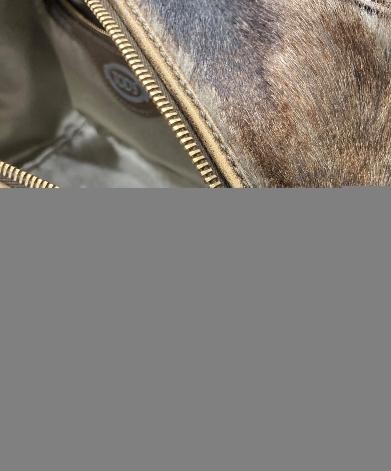 TOD'S Hand Bag Tote Purse Fur Brown Authentic