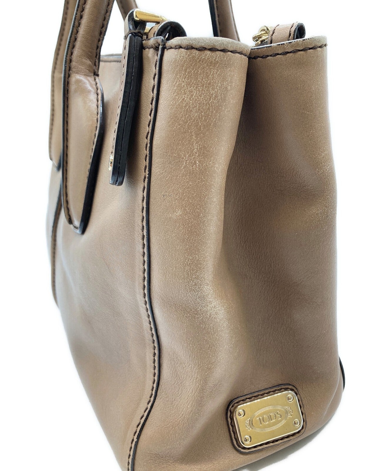 TOD'S Hand Bag Tote Purse Leather Beige Authentic