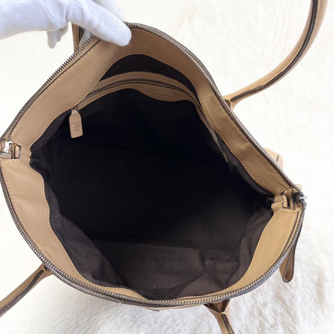 TOD'S Hand Bag Tote Purse Leather Beige Authentic