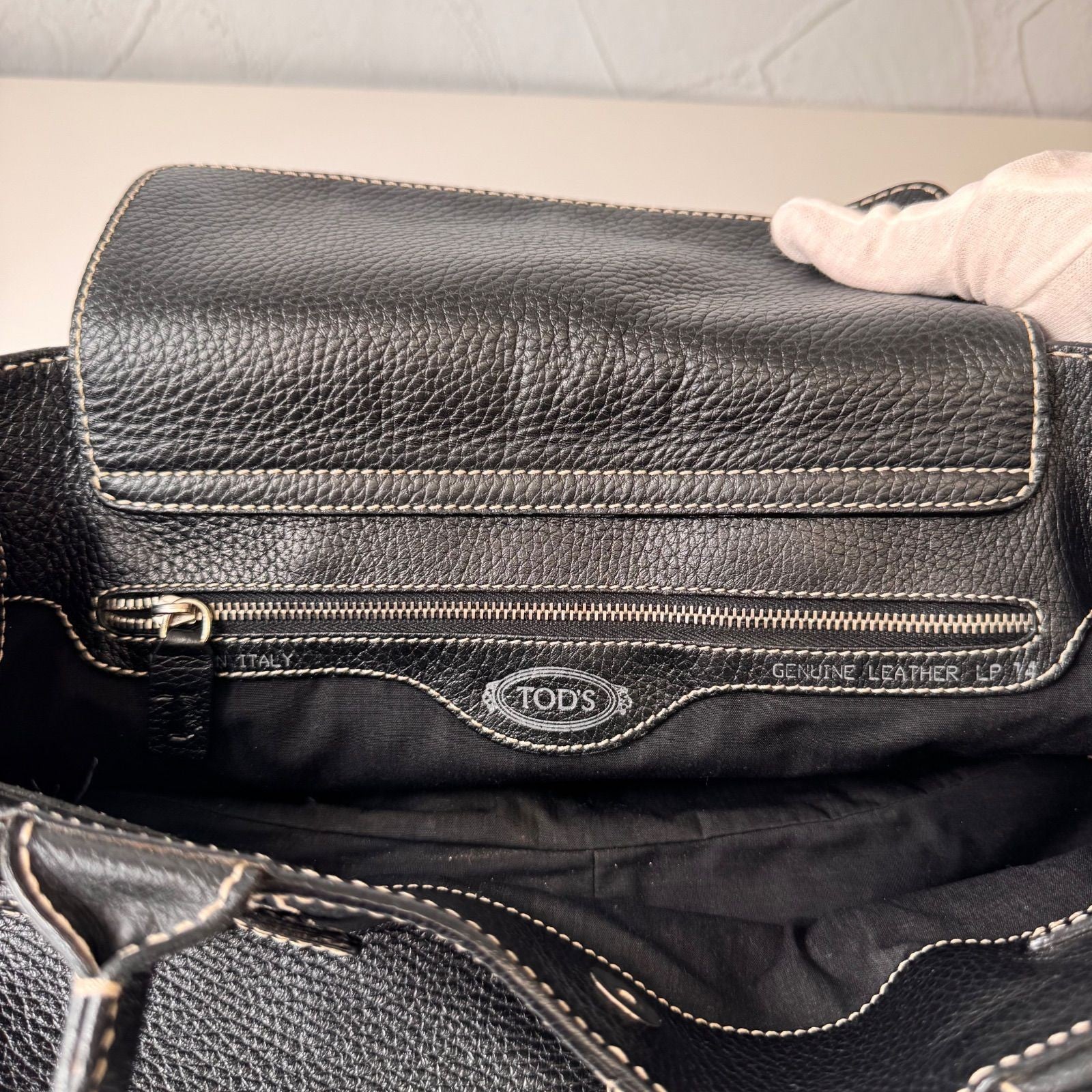 TOD'S Hand Bag Tote Purse Leather Black Authentic
