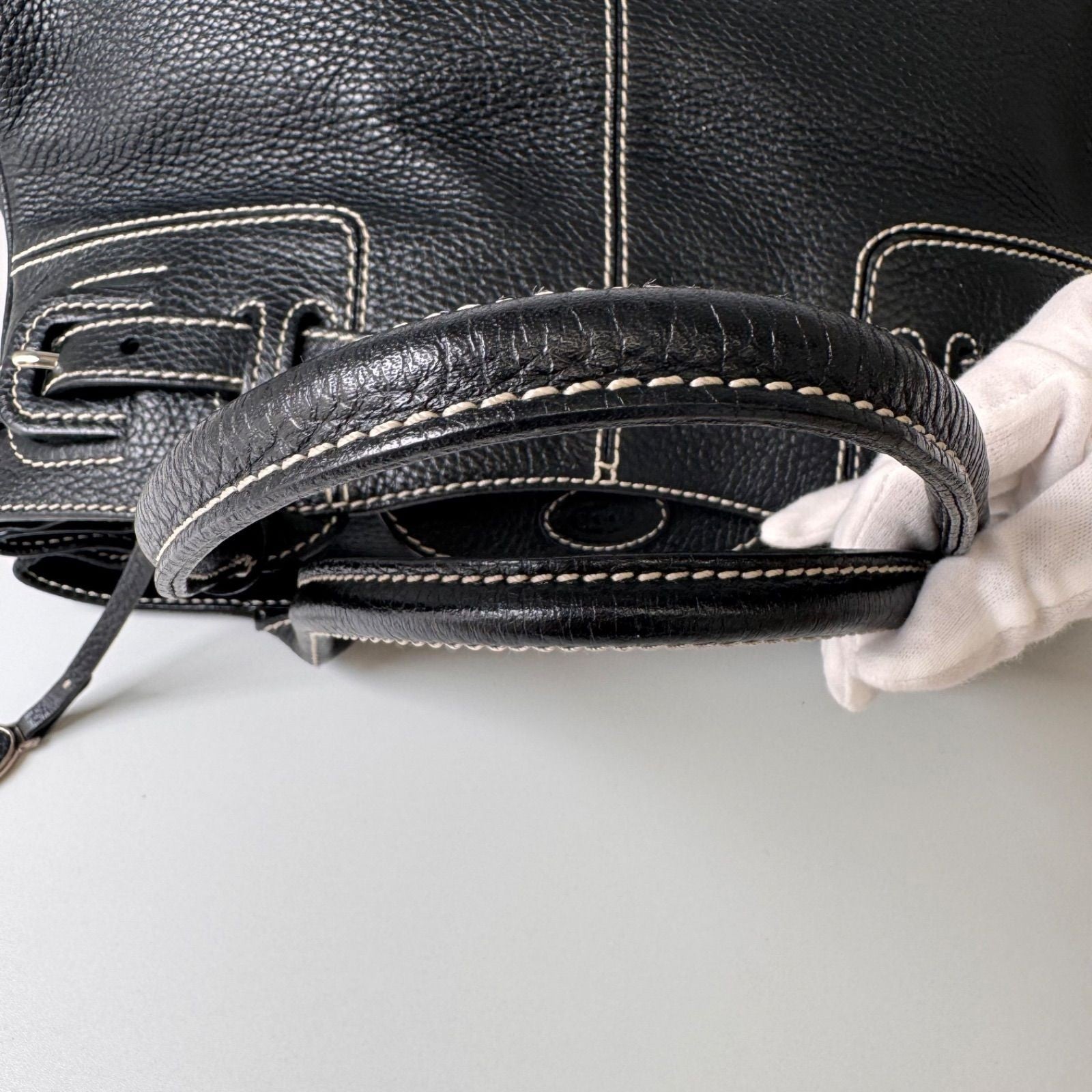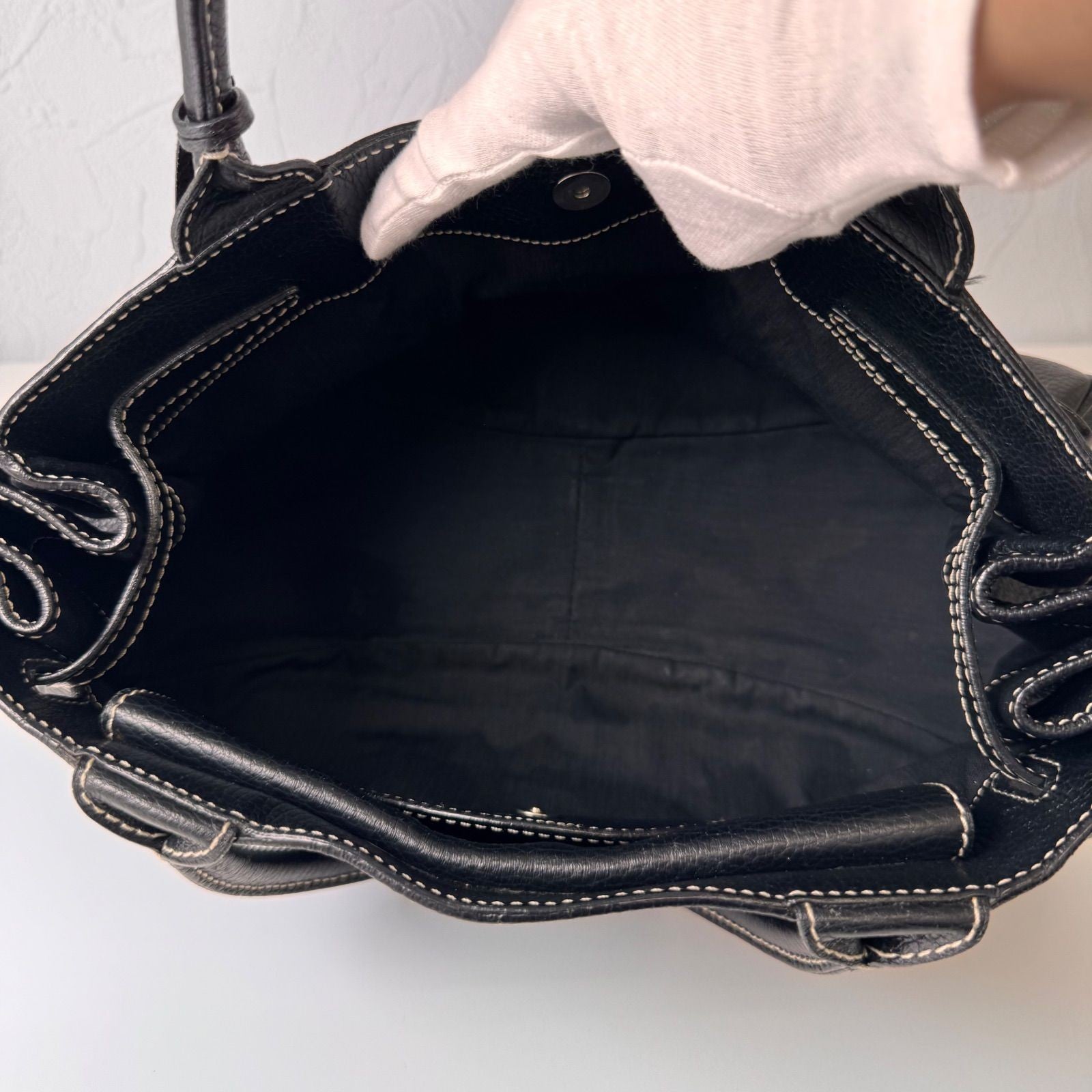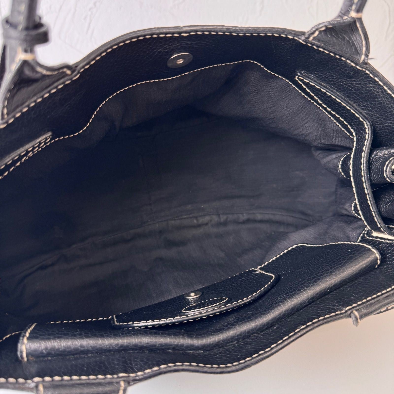 TOD'S Hand Bag Tote Purse Leather Black Authentic