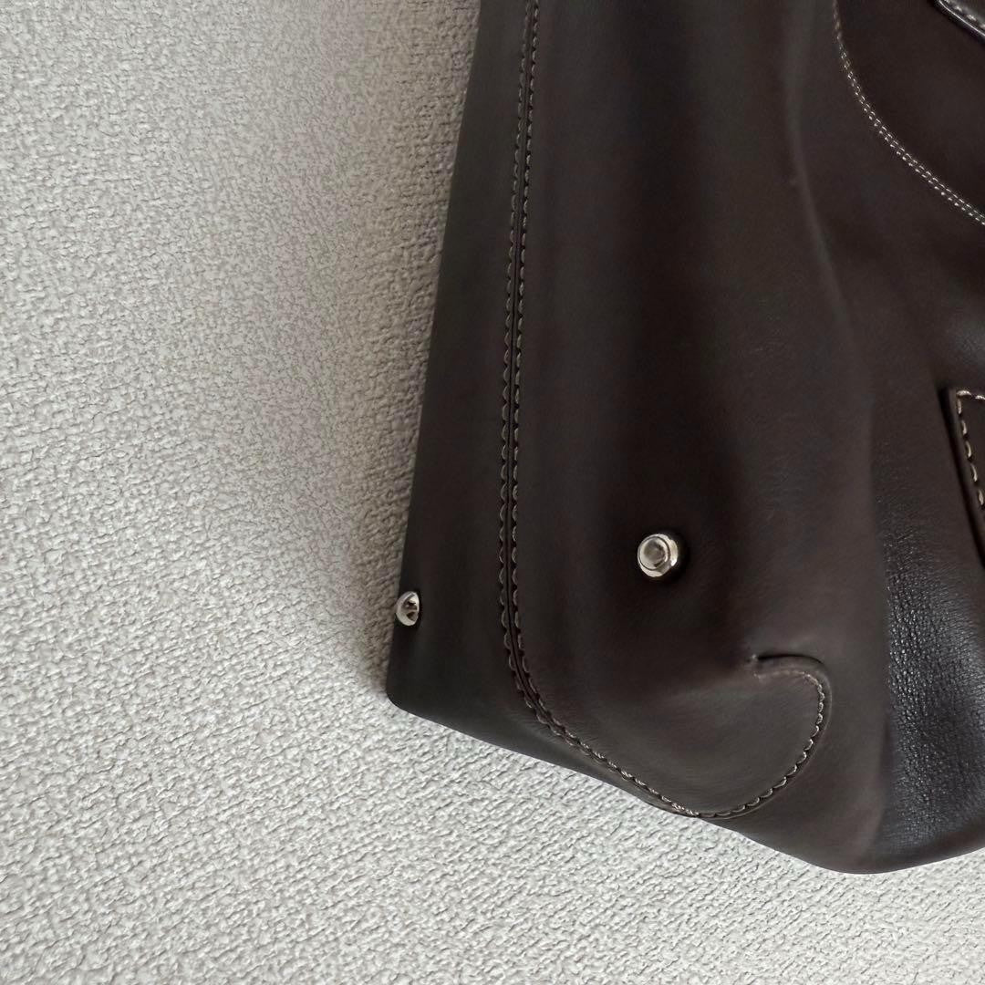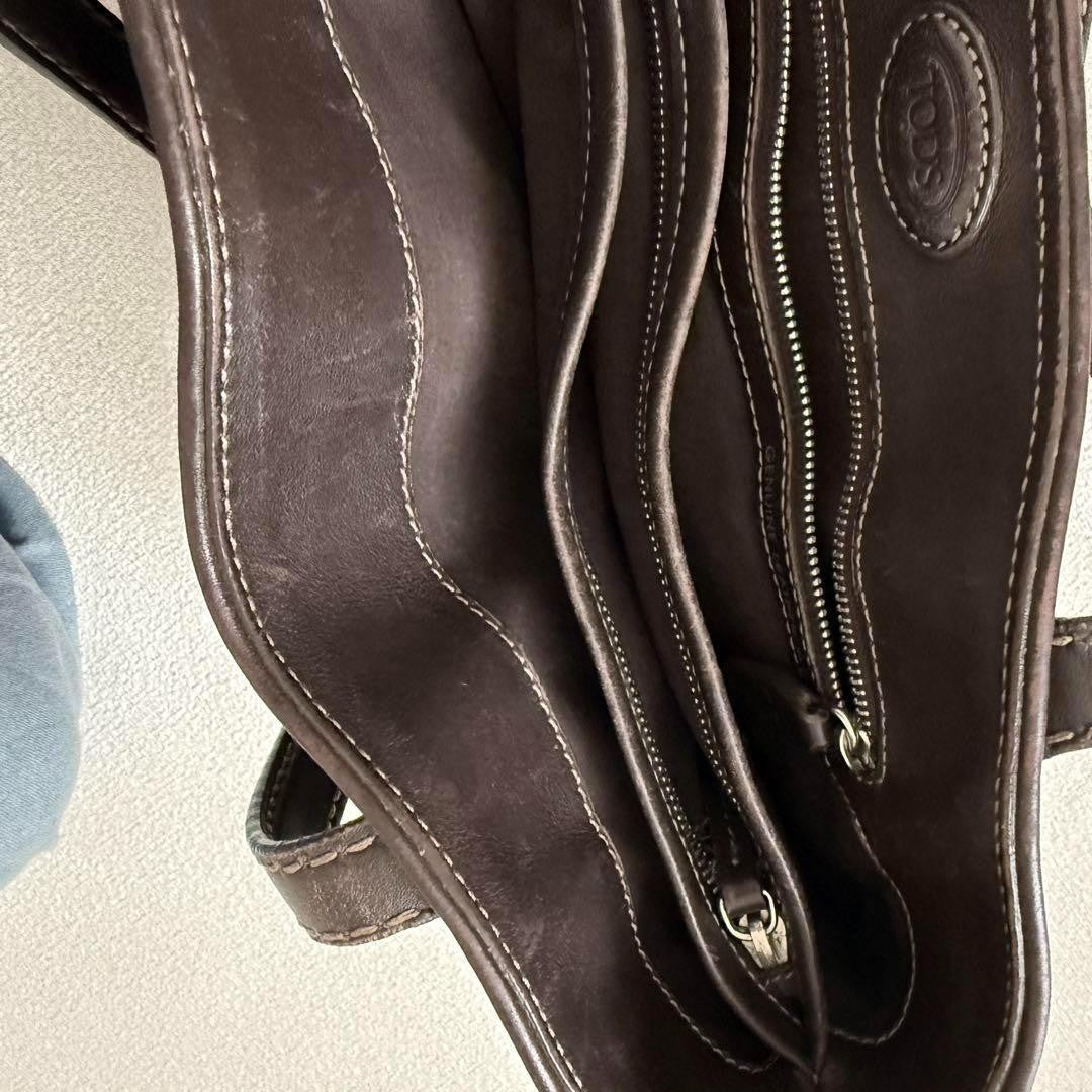 TOD'S Hand Bag Tote Purse Leather Dark Brown Authentic